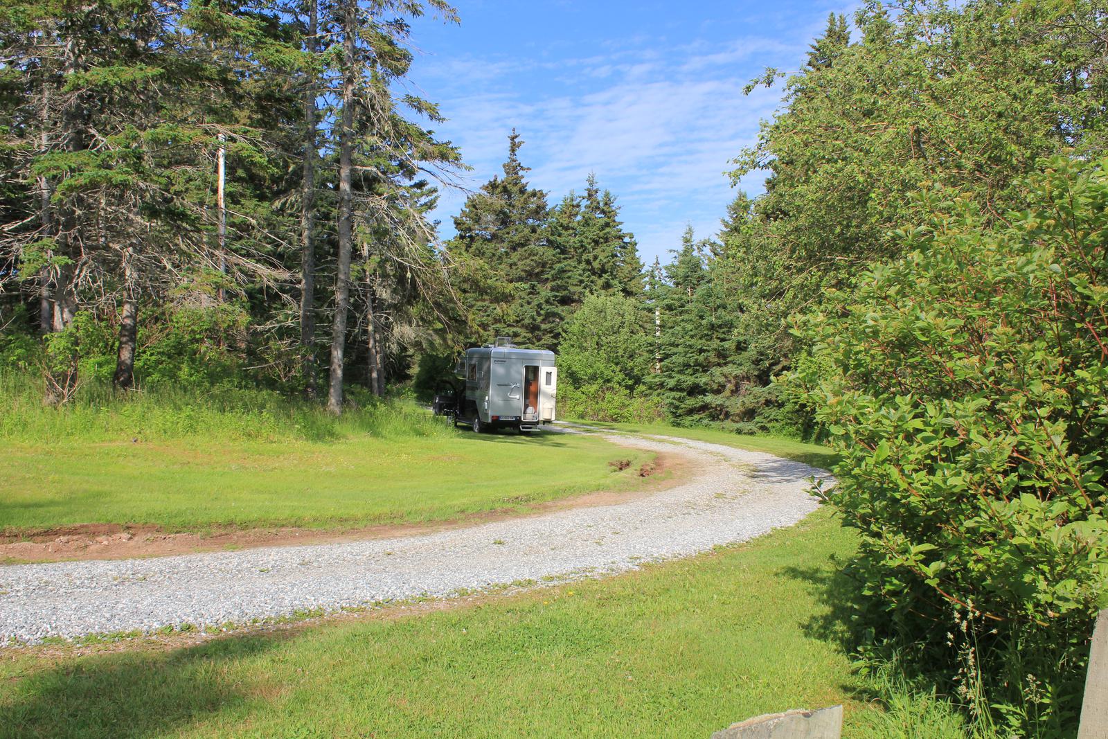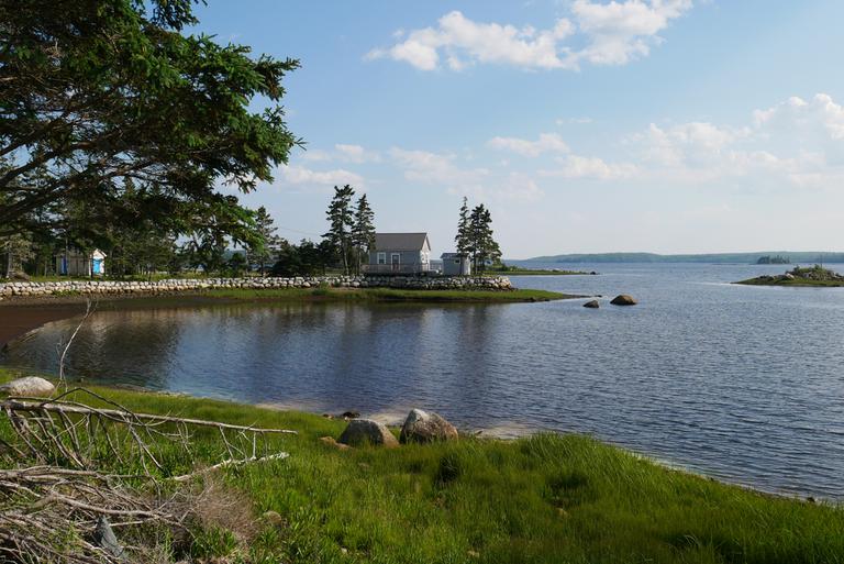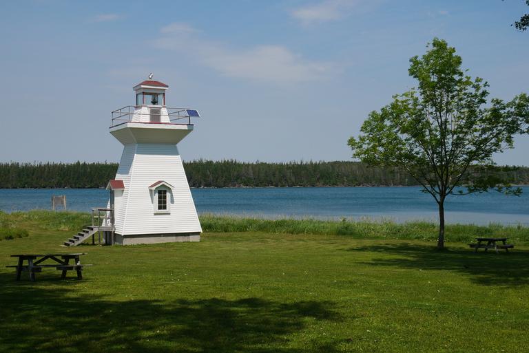 Nous traversons le pont et arrivons à Port Hastings sur l'île Cap Breton. Nous nous arrêtons au Centre d'Information Tourisitique pour collecter des renseignements, car depuis de début de notre arrivée en Nouvelle Ecosse, il faut bien reconnaître que le manque de guide fait cruellement défaut. Une hôtesse nous accueille en français, elle nous recommande l'ïle Madame, les rives du lac Bras d'Or et le Cape Breton Highland NP, mais nous déconseille Sydney et la côte sud-est de l'île. Nous nous mettons en route pour l'île Madame, et une bonne surprise nous attend juste avant de franchir le pont : une aire de service pour camping-cars comme nous les connaissons, bien rares dans cette région, l'occasion de pouvoir enfin remplir notre réservoir d'eau potable (45.59226, -61.08841). Nous nous arrêtons pour déjeuner dans le Lennox Passage Provincial Park, un nouvel endroit charmant.