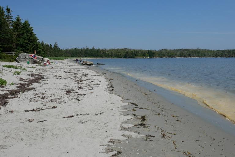 Nous revenons sur la Marine Drive. Nous la laissons au bout d'une trentaine de kilomètres pour rejoindre la péninsule du Taylor Head Provincial Park. A l'extrémité de celle-ci, une belle plage et quelques jolis espaces de pique-nique. Nous déjeunons en bord de mer, il fait 28°C.