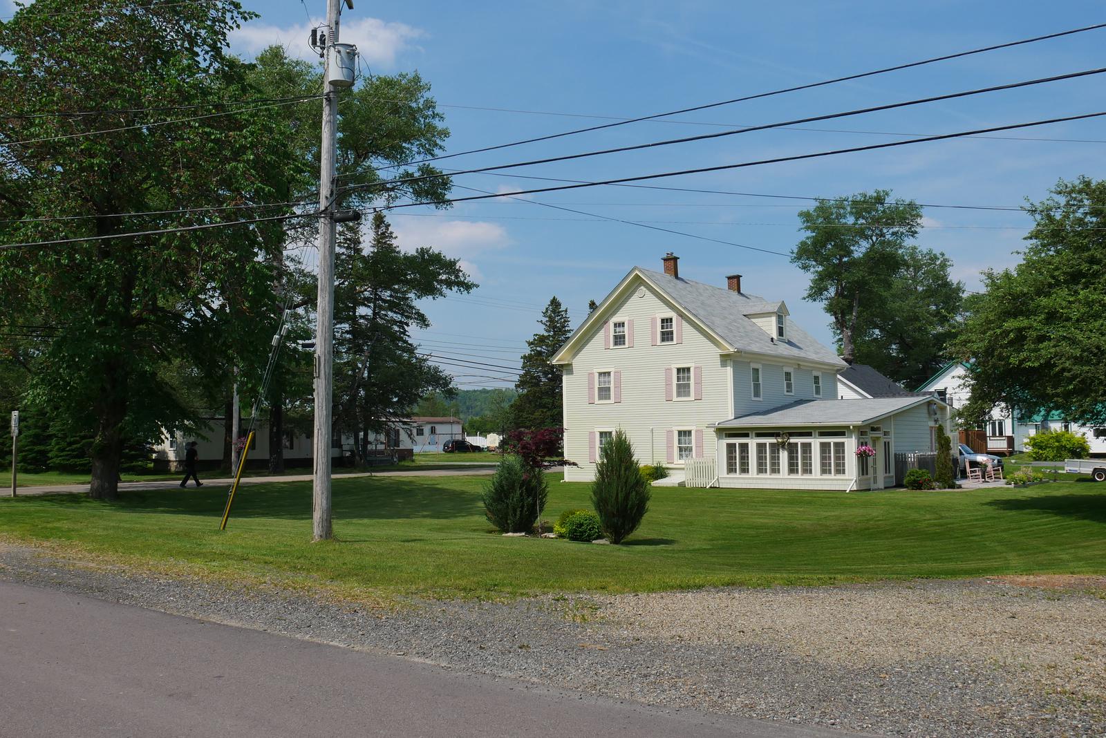 Nous arrivons à Sherbrooke, pour la première fois depuis que nous suivons cet itinéraire, nous traversons un village constitué qui n'est pas qu'une succession de maisons alignées le long de la route principale. Ces dernières sont parfaitement entretenues, entrourées d'un gazon impéccablement tondu. Il est d'ailleurs surprenant de voir un tel acharnement à tondre sa pelouse, mais certainement que si cela n'était pas fait, la végétation environnante reprendait très rapidement ces droits...