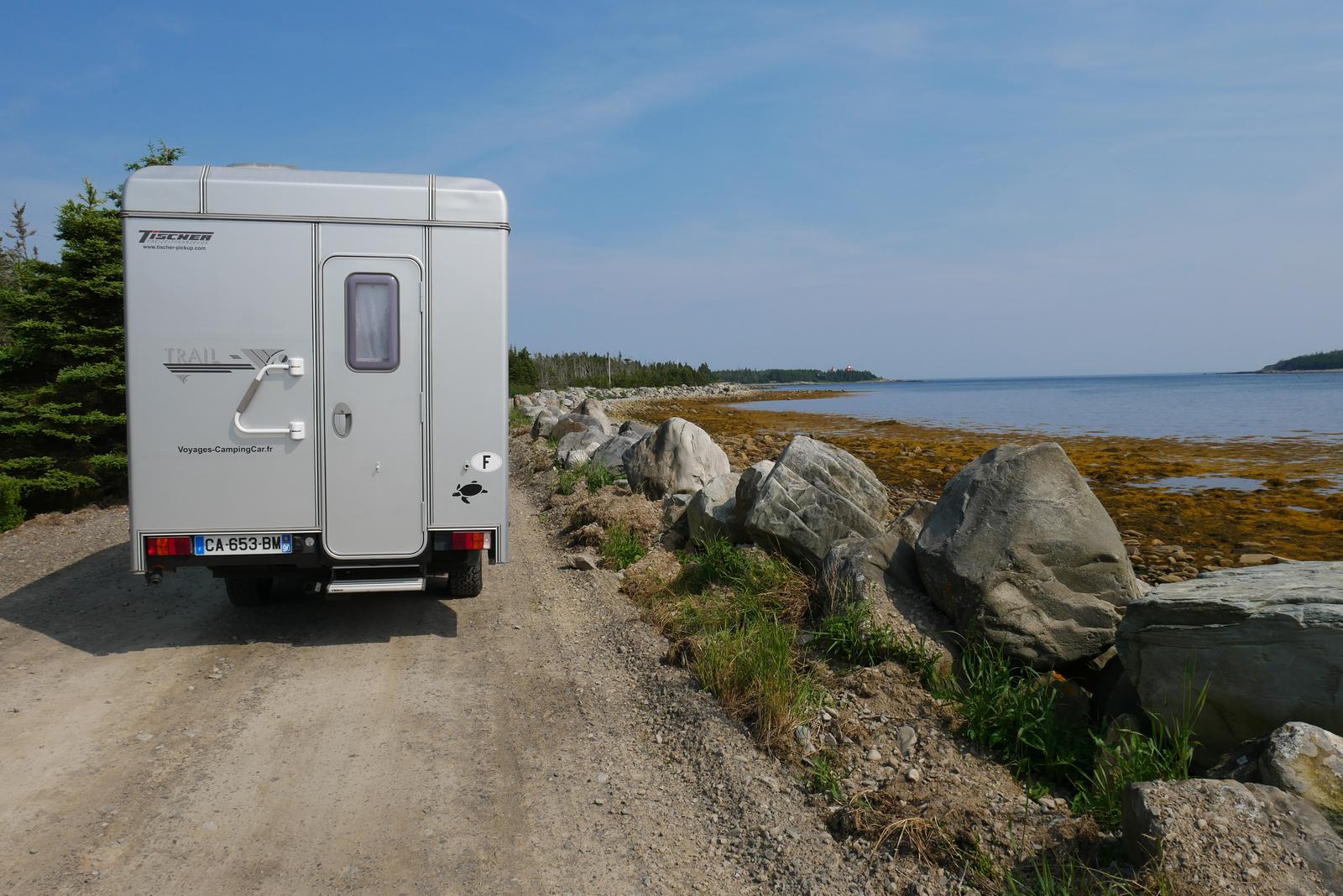 Nous nous garons sur le parking du centre d'information. Celui-ci étant trop éloigné du phare, il n'y a personne. Nous venons de trouver notre premier bivouac au Canada.