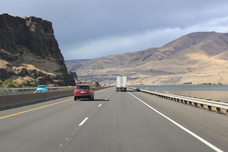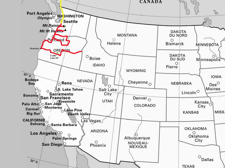 Nous reprenons la route, descendons les 130 km des belles gorges de la Columbia et retrouvons la banlieue-est de Portland. Nous bifurquons ensuite sur L'I5 en direction du sud. La pluie nous accompagne maintenant, neige mélée, puis un peu de grêle. Nous nous arrêtons pour la nuit sur une aire de repos le long de l'I5.
