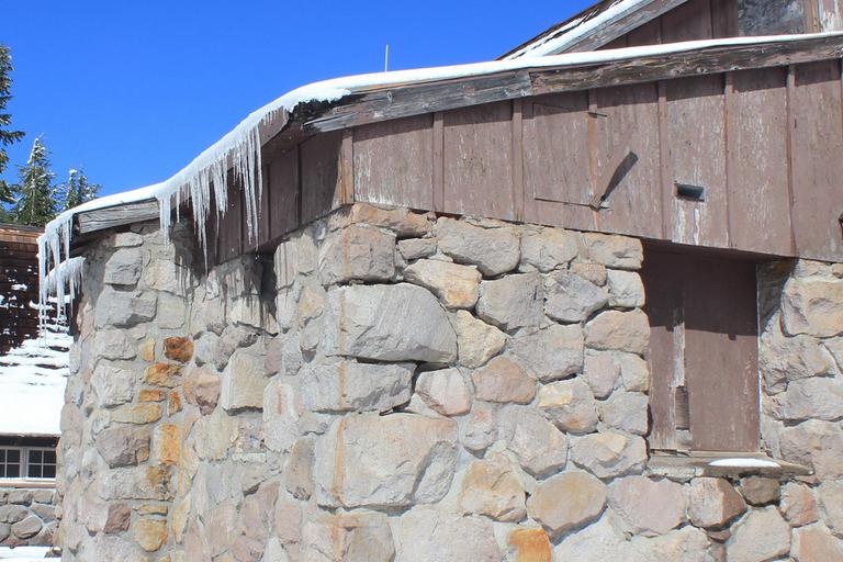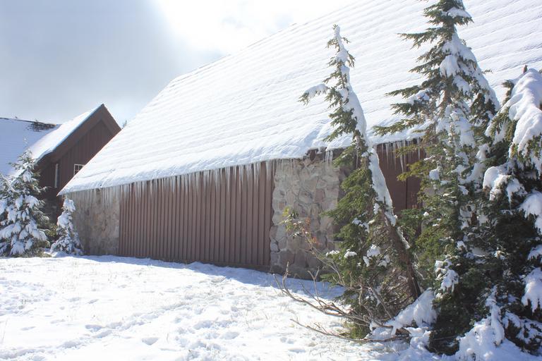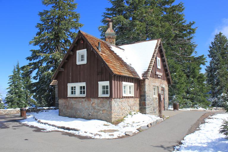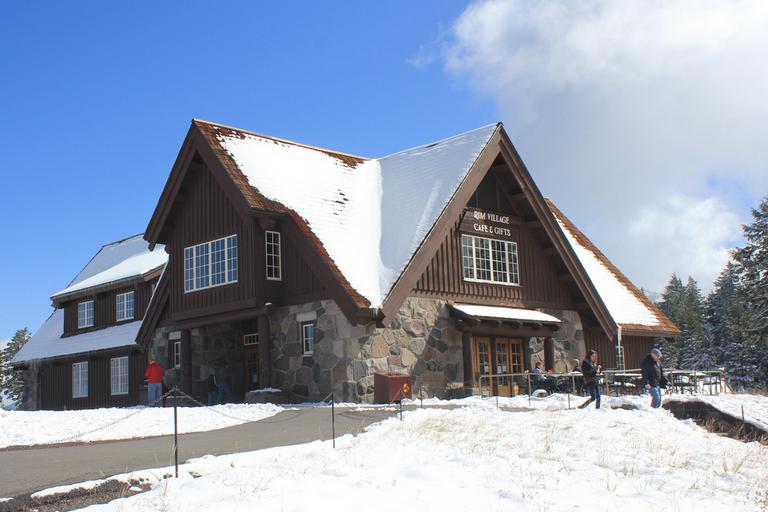 Nous arrivons à la guérite de l'entrée du parc et prenons le pass annuel "America the Beautiful", valable pour une année dans tous les parcs nationaux, pour $80 par véhicule. Nous parcourons les derniers kilomètres dans un paysage enneigé et découvrons enfin Rim Village.