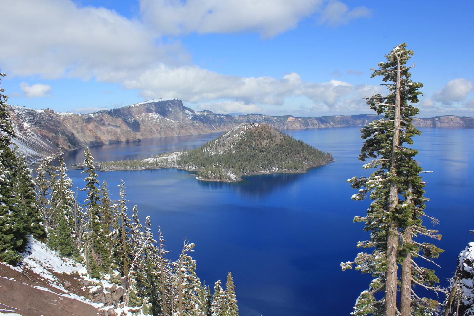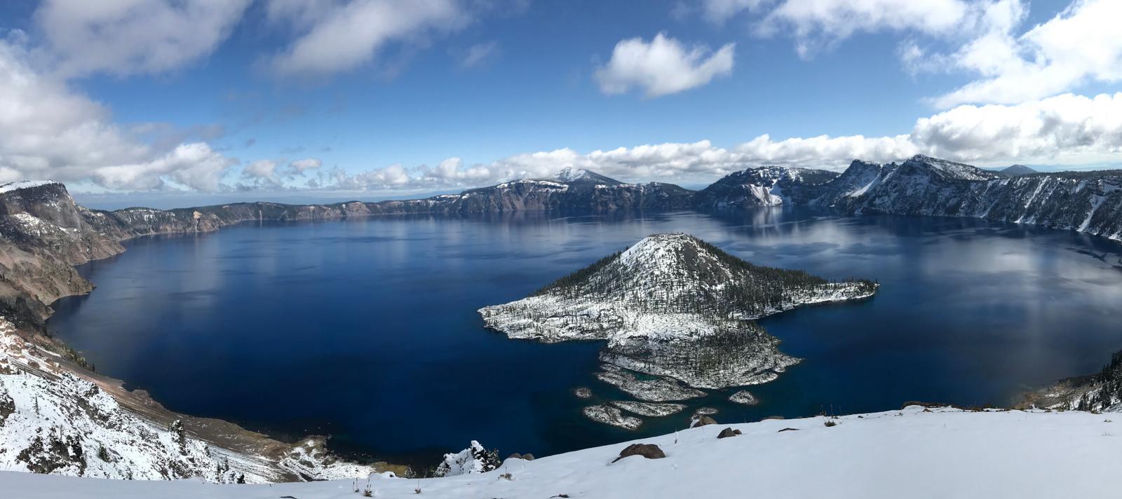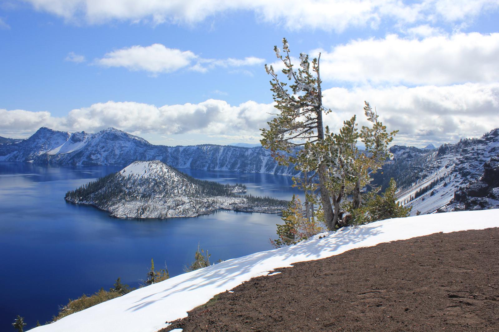 L'histoire de ce site est exceptionnelle : le mont Mazama était un volcan de la chaîne des Cascades. Au fil de ses éruptions, la lave s'est accumulée pour créer un cône de 3 550m d'altitude. Il y a 7 700 ans, une éruption plus intense que les précédentes, projeta sa partie supérieure, tandis que sa partie intérieure s'effondra pour former une profonde caldera. Celle-ci finit par se remplir au fur et à mesure des précipitations. Durant ce temps, une île volcanique émergea des eaux, l'île Wizard.