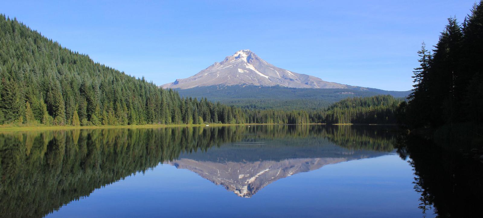 Nous sortons de Portland par la route 26, en direction du mont Hood. Ce volcan culmine à 3 429m et par sa hauteur, il est le quatrième de la chaîne des Cascades que nous suivons depuis Seattle. Nous prenons des informations au bureau des rangers de Governement Camp. Ce volvan est visible depuis le lac Trillium, nous partons pour celui-ci.