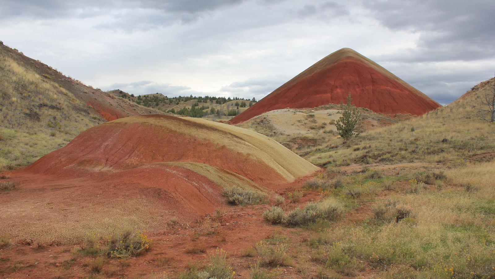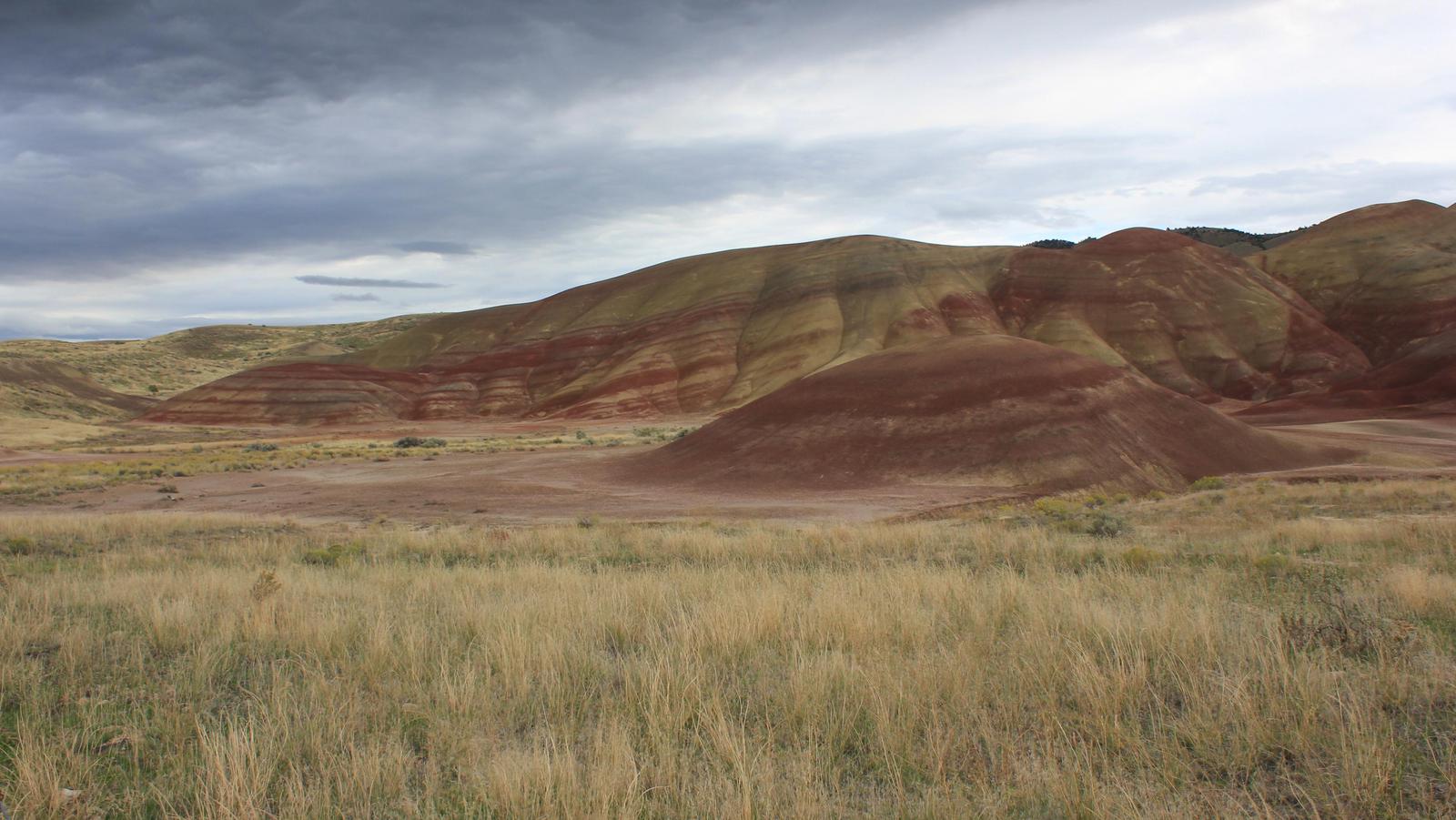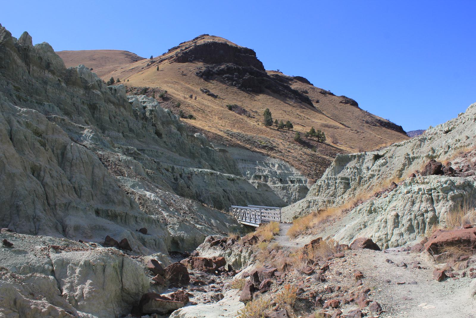 Dernière halte sur le site de Foree. Ici comme précédemment à Painted Hills, ces formations ne se cantonnent pas aux sites répertoriés mais sont présentes tout au long du parcours, et peuvent nous apparaître soudain au beau milieu d'une prairie au vert éclatant.