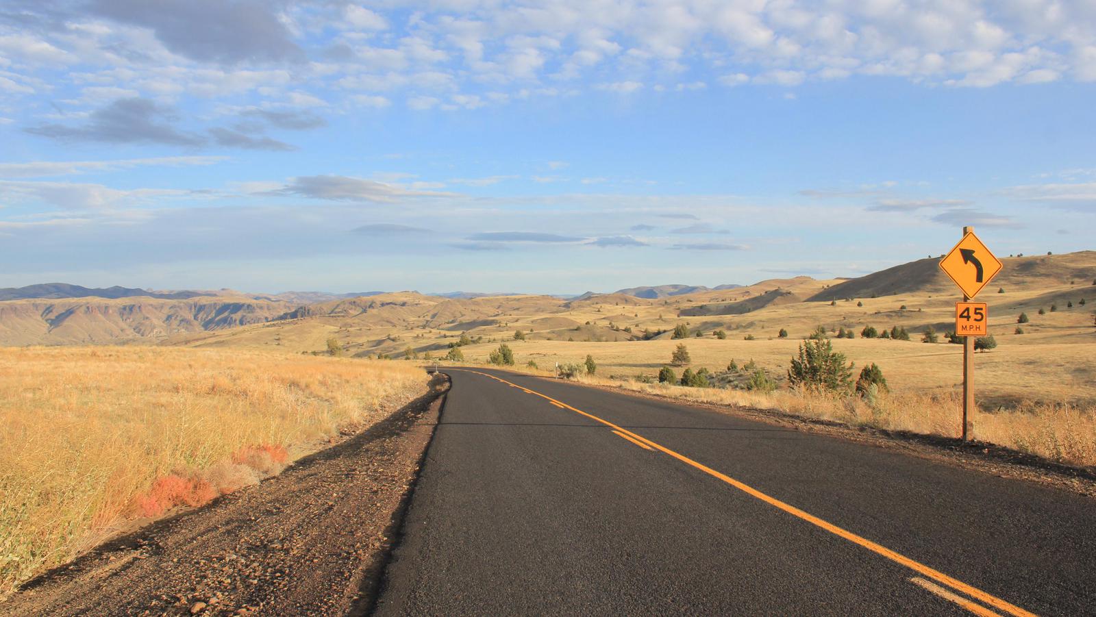 Les paysages sont splendides et les villages sont rares sur ce trajet, le premier que nous traversons est Shaniko, une ville fondée à la création de la ligne de chemin de fer Columbia Southern Railroad, et désertée depuis sa fermeture. Les bâtiments du centre historique de cette ville fantôme sont aujourd'hui inscrits au registre national des lieux historiques.