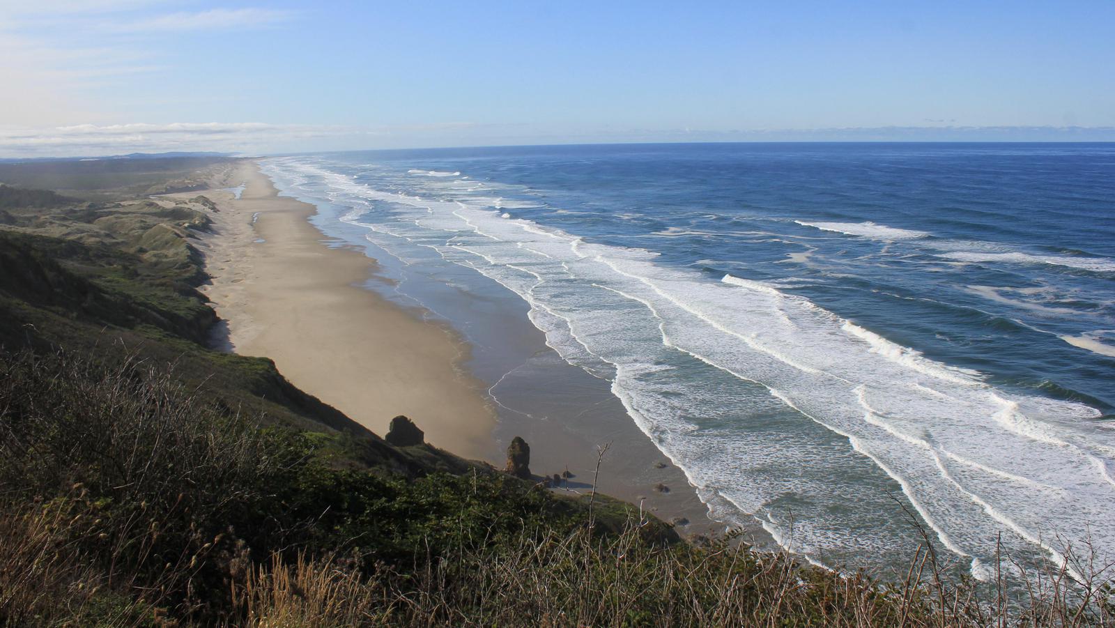 Il pleut toujours ce matin, mais nous devrions revoir le soleil au bord du Pacifique. C'est avec cette motivation que nous reprenons la route. Nous quittons l'autoroute à Corvallis et suivons la route 34. Nous débouchons sur l'océan à Waldport, après 130km de route de montagne, sinueuse et boisée.