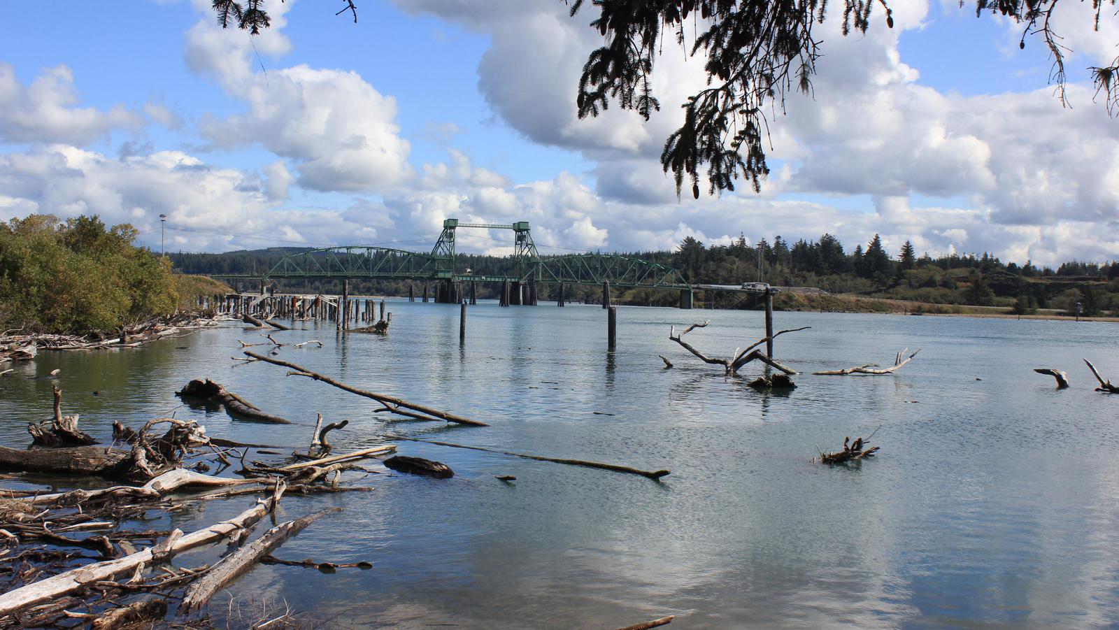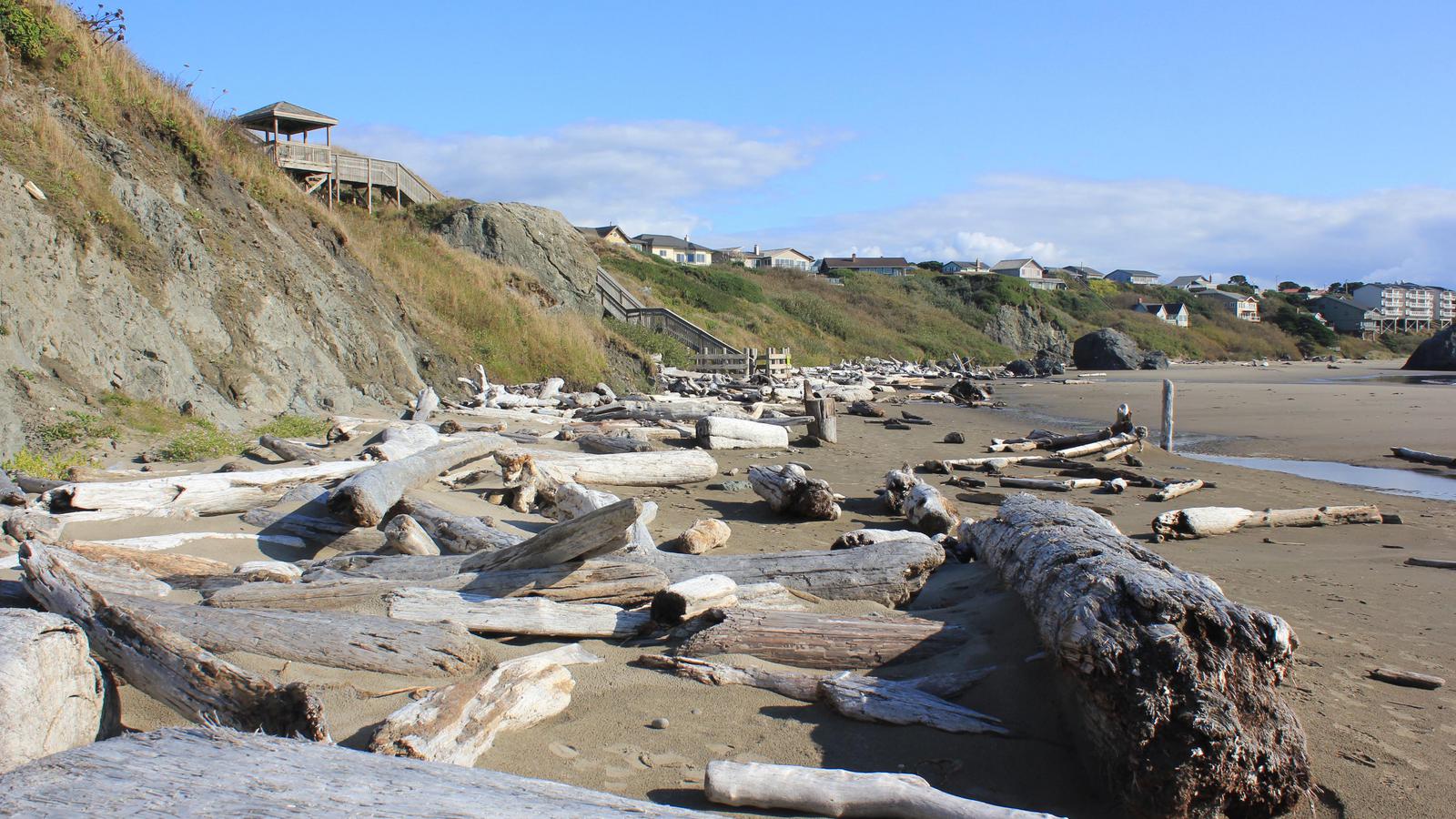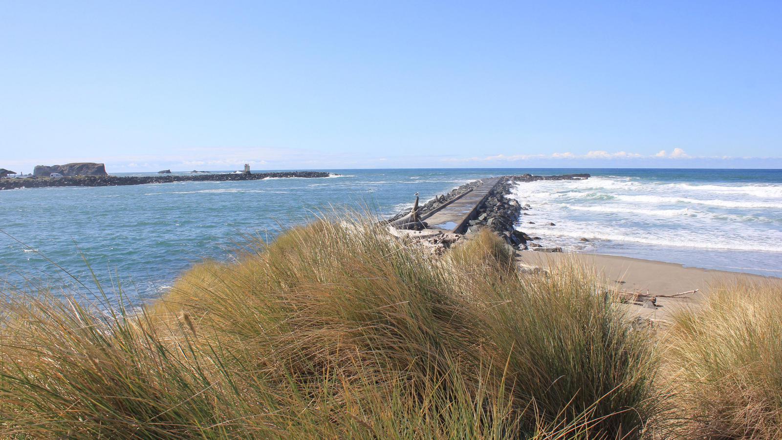 Brandon est située à l'embouchure de la Coquille River. Un parc est aménagé sur la rive nord de cet estuaire, le Bullards Beach State Park. Nous décidons de nous y installer pour déjeuner... Nous nous promenons vers le phare, la plage est très belle mais il est fortement déconseillé de se rendre sur le ponton en raison des fortes vagues et des courants. Comme sur l'île de Vancouver, ici aussi les amas de bois flottés sont impressionnants...