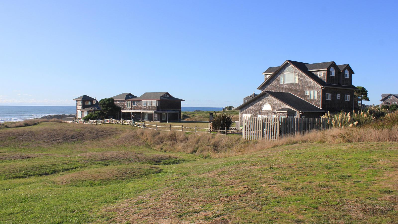 Nous franchissons l'estuaire de la Coquille River et entrons dans la station balnéaire de Brandon. La saison est terminée, il ne reste plus que quelques touristes et des retraités profitant du soleil de cette belle journée. Les jolies maisons, aux façades couvertes de tavaillons, forment un ensemble assez homogène sur la falaise qui domine l'océan.