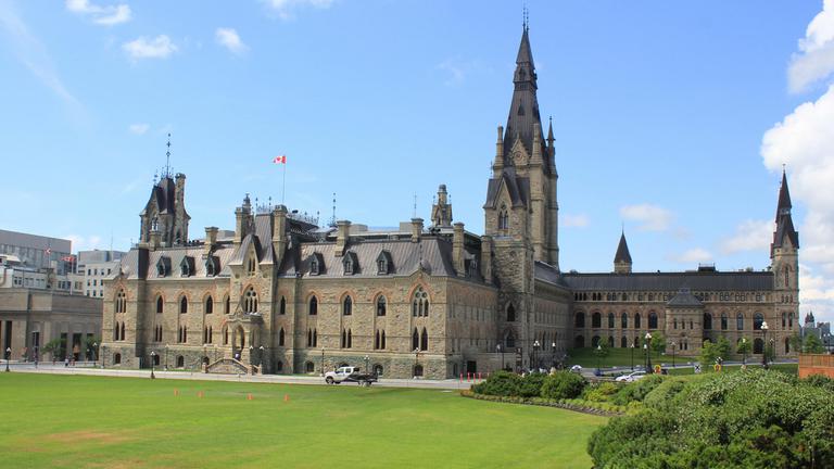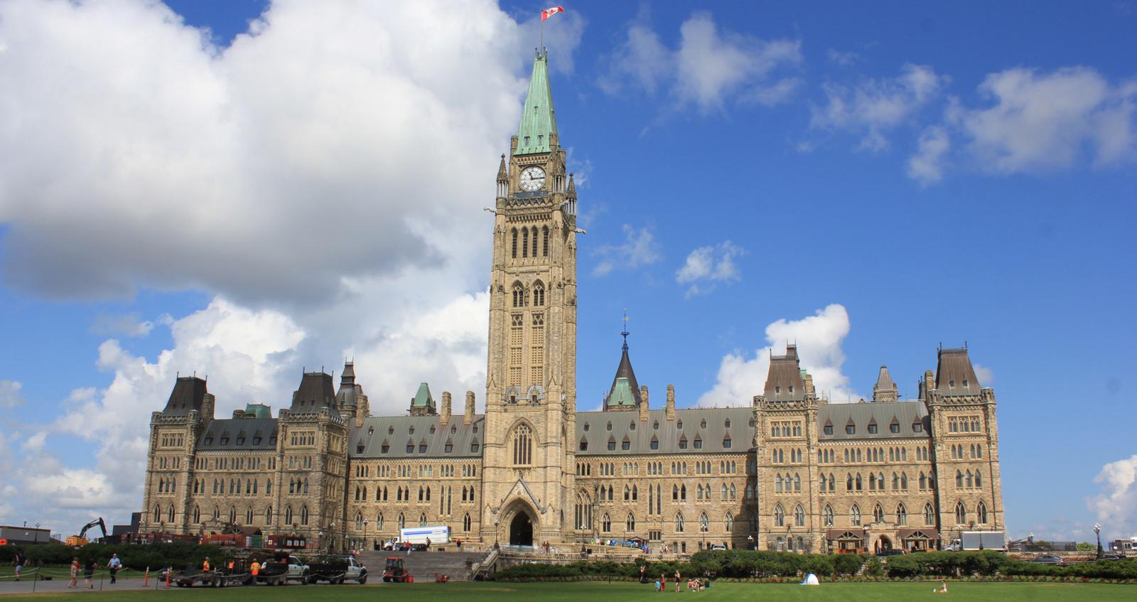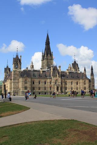 Nous continuons l'ascension de la coline du parlement et arrivons devant les grilles du Sénat et de la Chambre des communes.