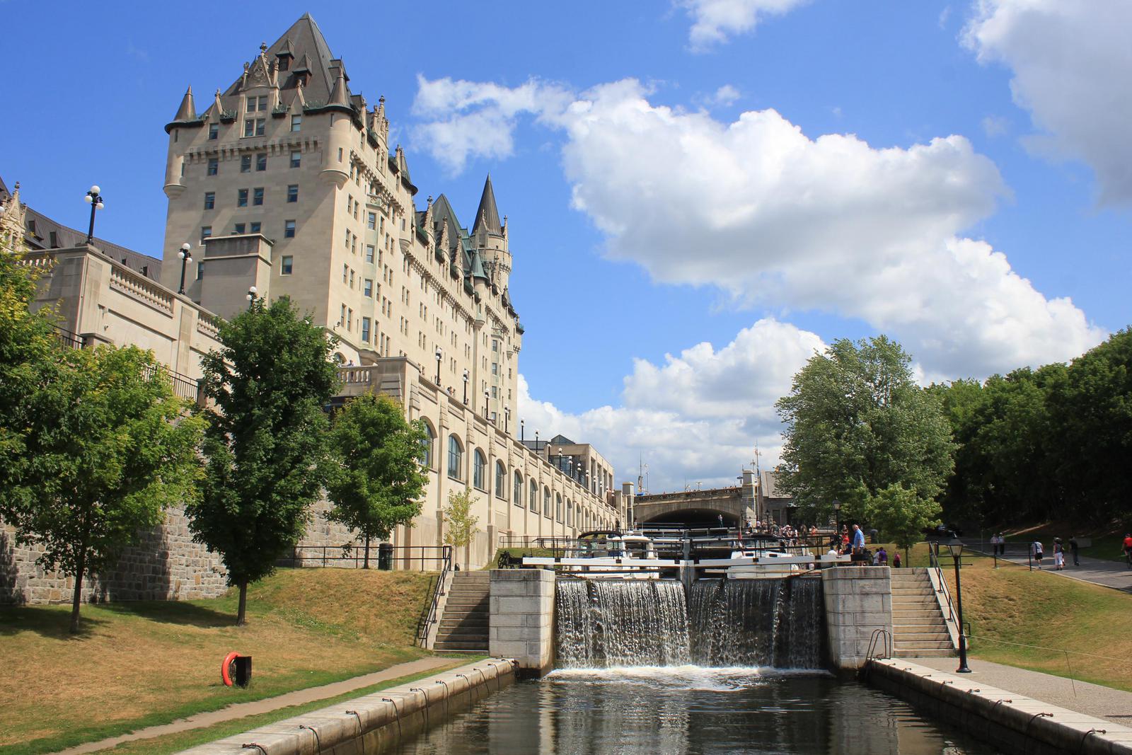 L'imposant chateau qui domine ces écluses est l'Hôtel Fairmont Château Laurier construit en 1912.