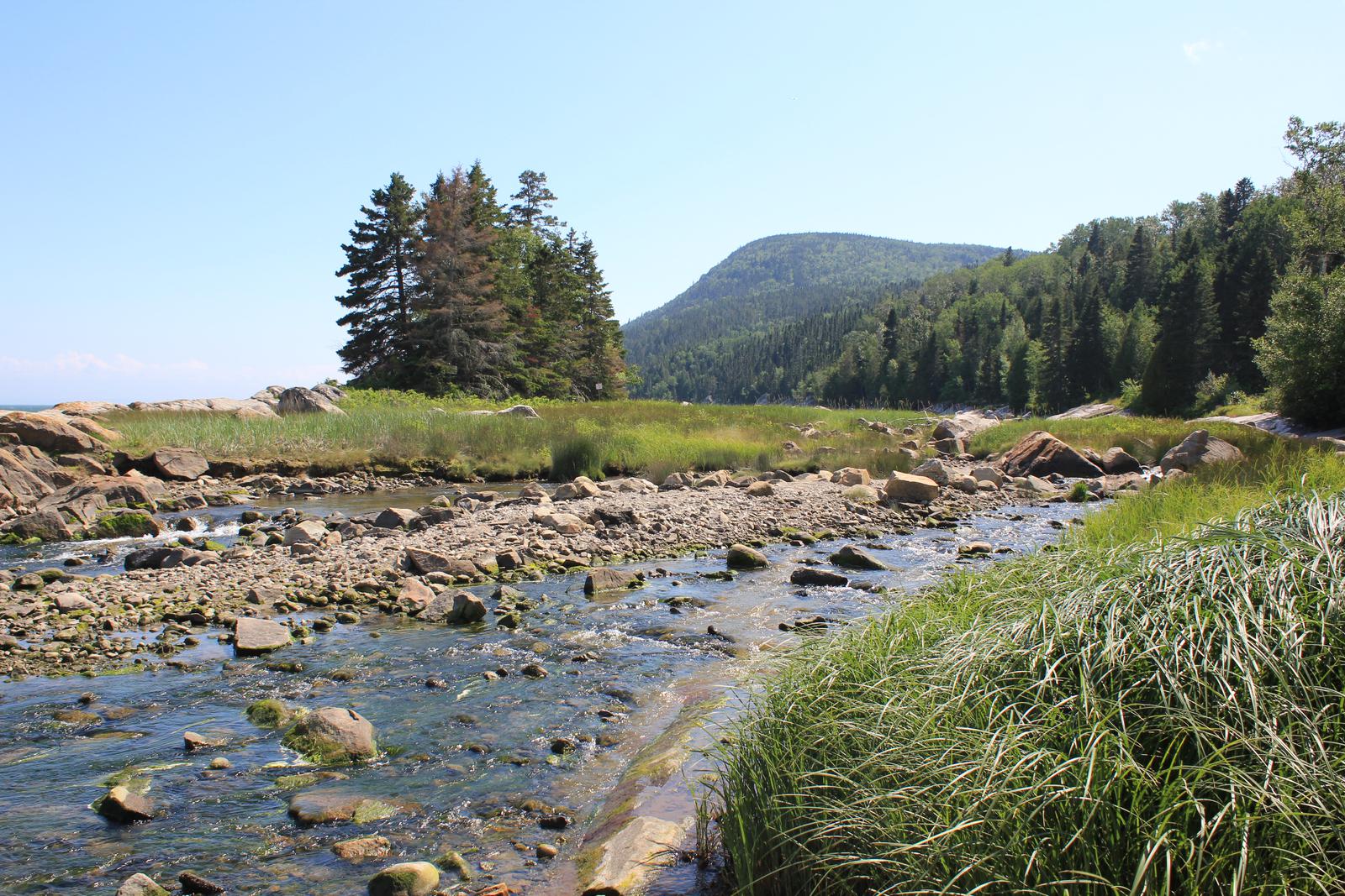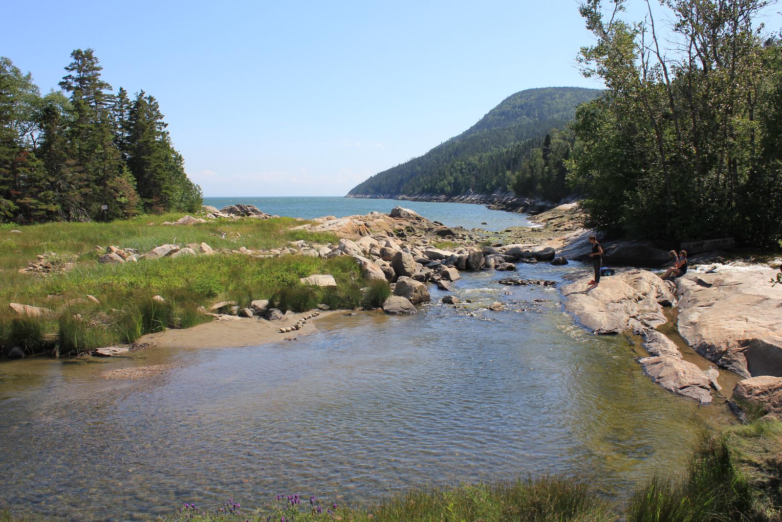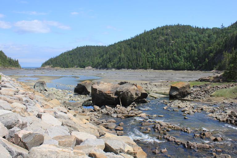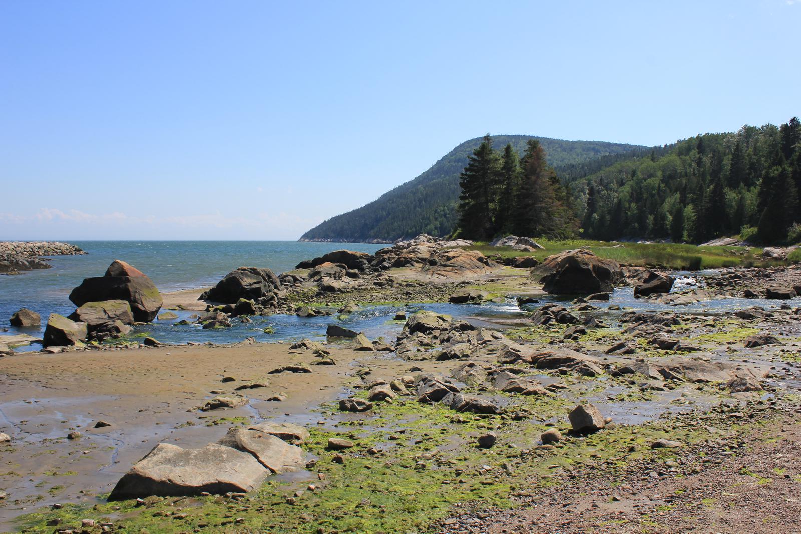 Au bord du torrent, le décor était magnifique, mais la nuit ne fut pas très bonne, on s'en doutait un peu. Nous partons déjeuner au calme, vers la Pointe-à-la-Croix, juste en face du village des Escoumins.