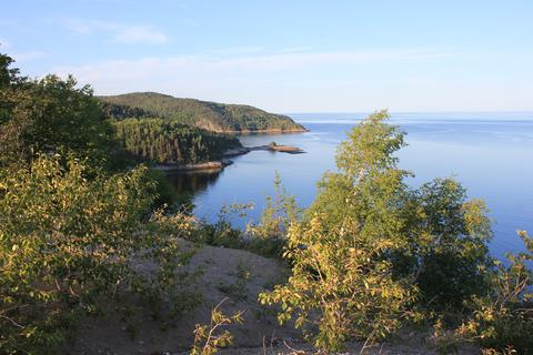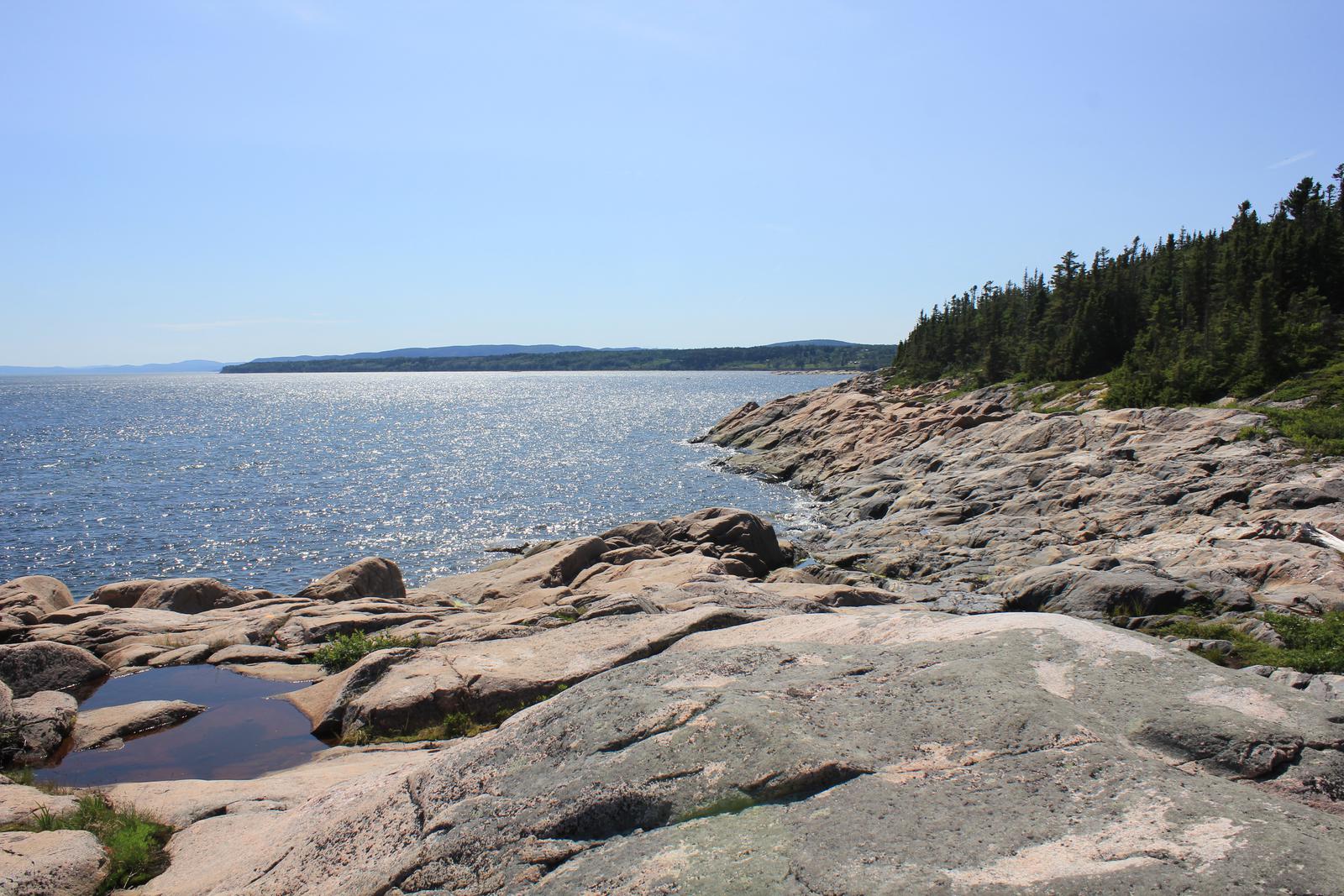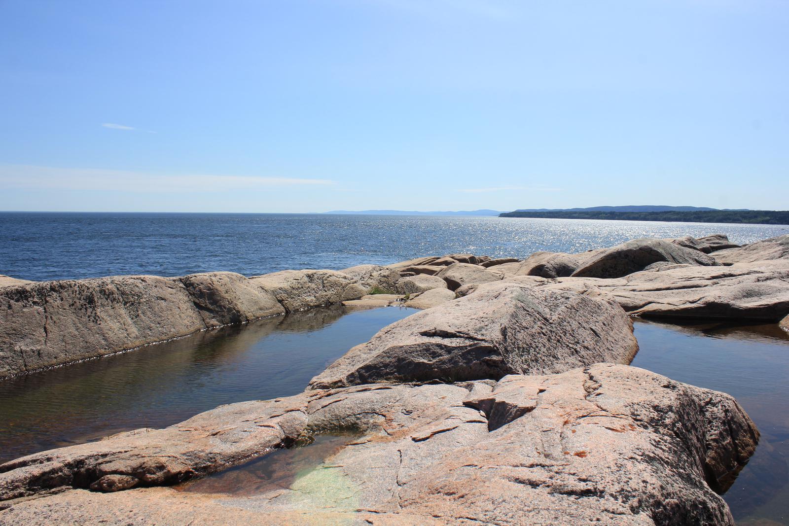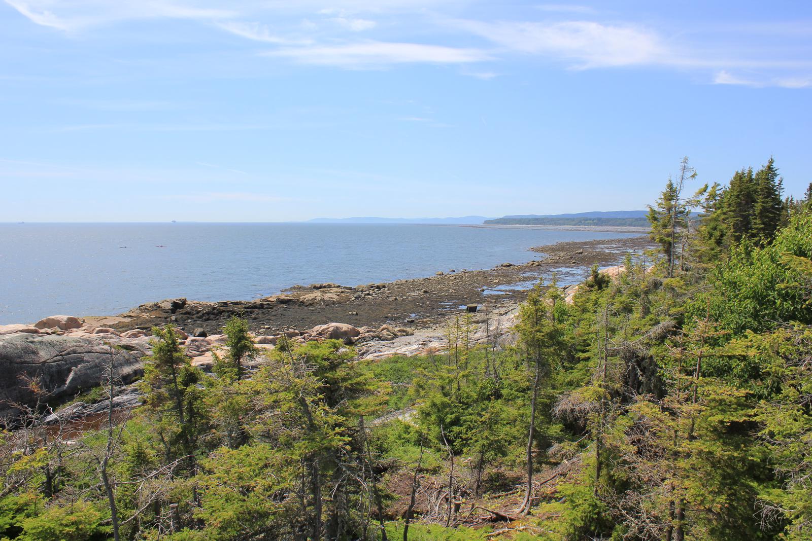 Nous cherchons maintenant notre lieu de bivouac. Nous tentons notre chance en vain du côté du parc de la baie Sainte-Marguerite, sur le fjord Saguenay, avant de revenir à l'Anse de Roche, toujours sur ce même fjord, sur les indications d'un jeune guide français du parc. L'endroit est magnifique, le parking est minuscule mais il reste de la place près d'une autre cellule.