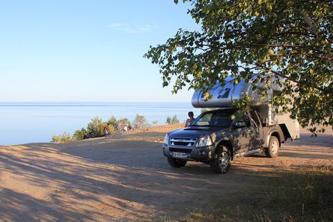Il fait presque nuit, nous nous installons sur l'aire de service à la sortie du village.