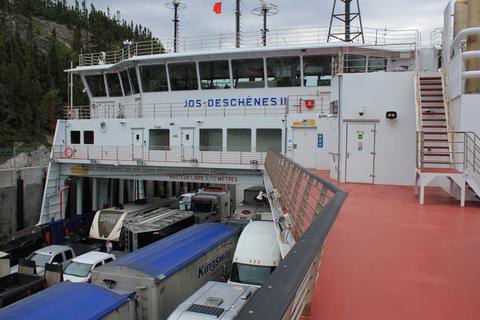 Les deux traversiers qui se croisent, peuvent emporter 117 véhicules par passage. Malgré tout, nous attendons une bonne demi heure avant de pouvoir embarquer. Et comme tous les touristes qui ont lu le Guide du Routard, nous espérons apercevoir des belugas en traversant le fjord...