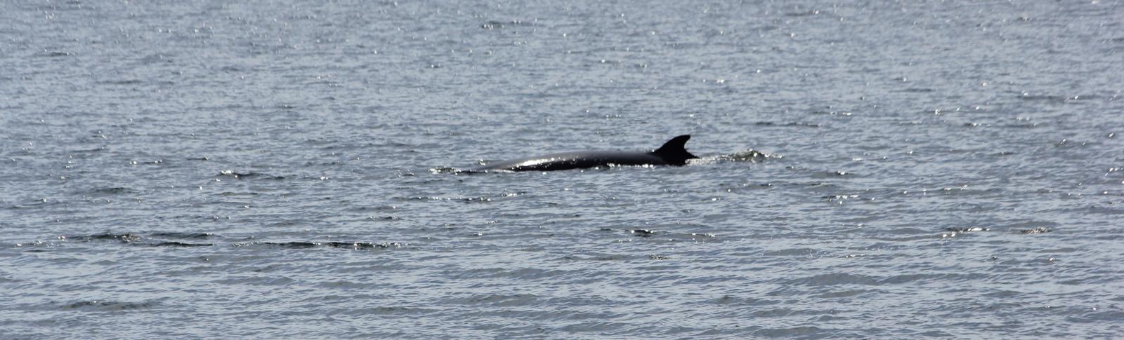 Nous passons la matinée et une bonne partie de l'après midi à scruter la moindre vaguelette. Le résultat est plutôt maigre, un beluga, une petite baleine blanche classée en voie de disparition depuis 2014, qu'Isa et les autres observateurs sauf moi verront très bien, et un rorqual commun qui passera montrer son dos juste devant mon objectif...