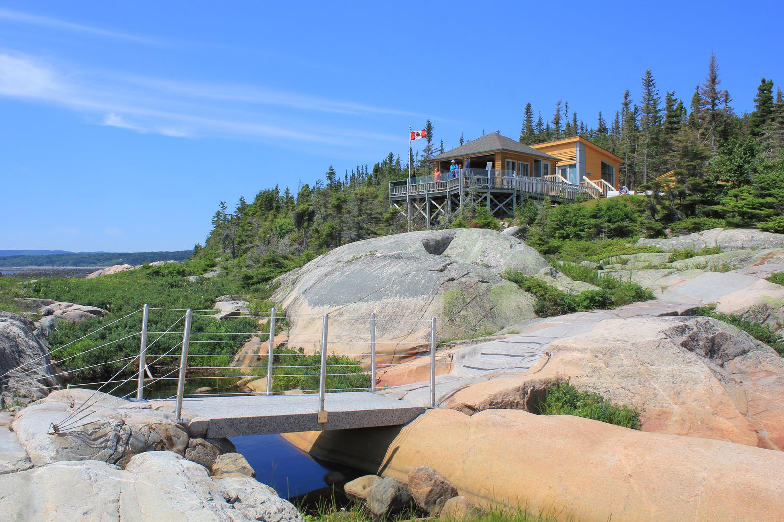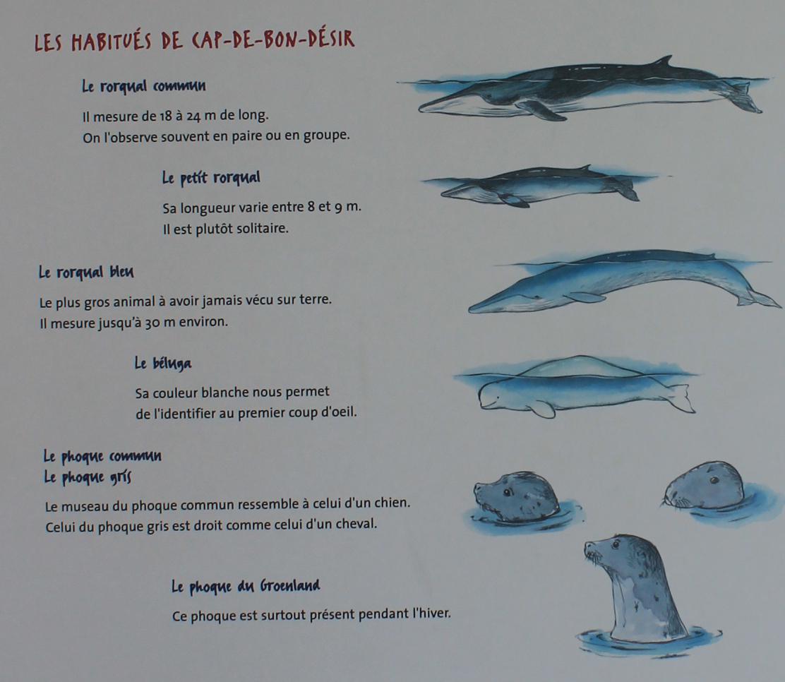 La région de Tadoussac, à la rencontre du fleuve Saguenay et du Saint-Laurent, est réputée pour la présence de baleines en saison estivale. L'observation de ces dernières se fait en bateau, souvent en zodiac, mais peut également se faire depuis la côte en raison des profondeurs très importantes à cet endroit. Nous avons déjà effectué une sortie en mer l'an passé en Islande, aussi nous essayons cette année de les voir depuis la terre ferme. Nous partons pour Tadoussac, parcourons quelques kilomètres et nous arrêtons un peu avant Les Bergeronnes au centre d'observation terrestre de Cap Bon-Désir. Ce site fait partie du parc marin Saguenay Saint-Laurent et est un parc national. Nous achetons le pass annuel à $CAD 67,70 (46€ par personne), qui sera sera valable pour les parcs de l'ouest.