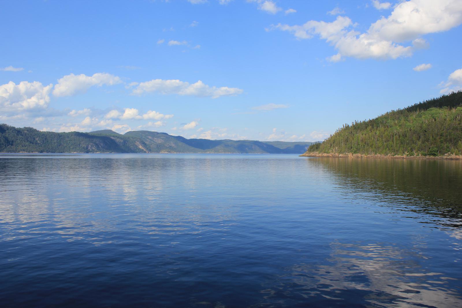 Cette rive est encore plus sauvage que la rive sud, nous parcourons plus de 80 km sans rencontrer la moindre habitation, alors qu'habituellement les maisons se succèdent où que nous soyons depuis notre arrivée. Nous faisons un seul arrêt à Sainte-Rose-du-Nord, un petit port très touristique bien isolé sur cette côte nord..