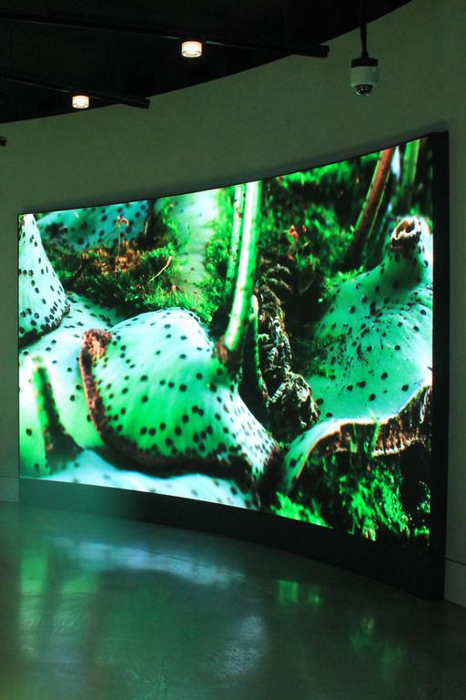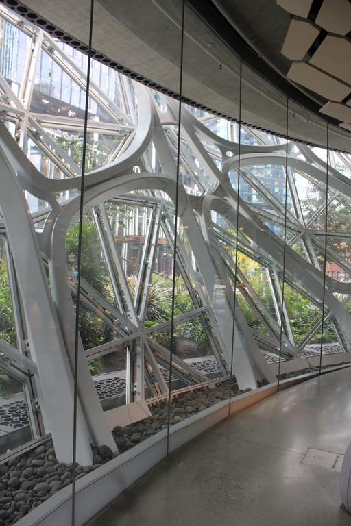L'accès aux sphères est libre, mais nous ne pouvons visiter que le rez-de-chaussée où se tient une petite exposition sur le monde végétal.