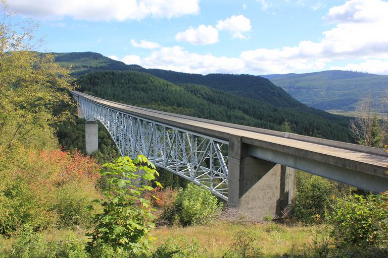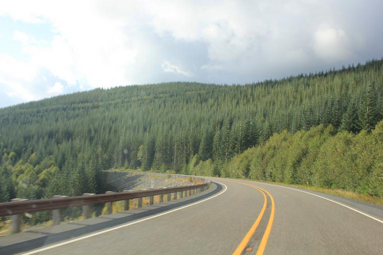 Le ciel est presque bleu ce matin. Nous reprenons l'I5 pour Portland. Nous roulons une bonne demi-heure puis apercevons l'indication Mount St Helens National Volcanic Monument. Nous suivons cette direction, quittons l'I5 pour la route 505.