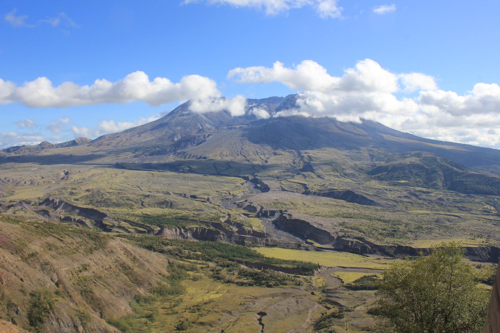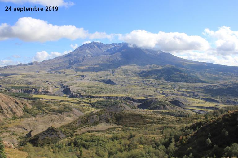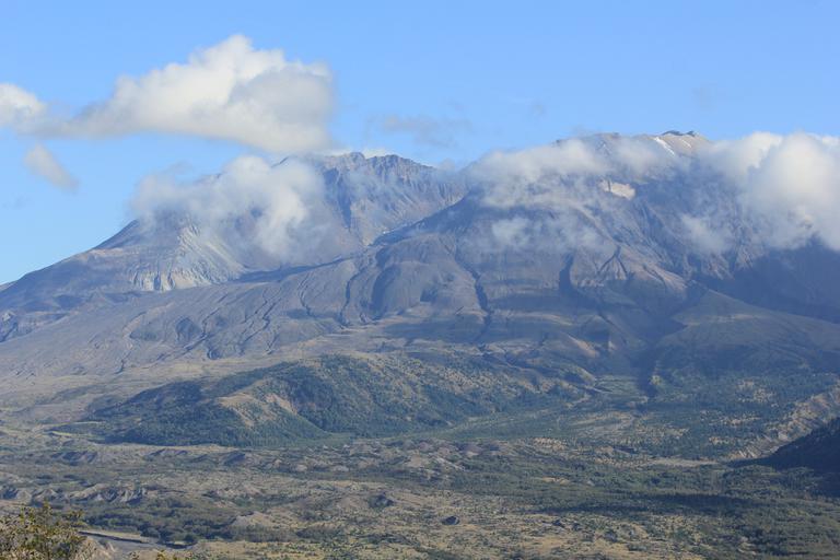 Le mont St Helens est le même type de volcan que le mont Rainier, il culmine à 2 549m. Sa dernière éruption date de 2008, mais la plus meurtrière date du 18 mai 1980 et fit 57 morts. Un versant entier du volcan disparut au cours de celle-ci et sa forme pointue fut remplacée par un cratère en fer à cheval. Son altitude passa de 2 950m à 2 549m.