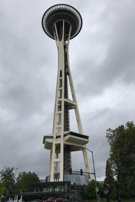 Nous arrivons au pied de la Space Needle, nous apercevons les formes et les couleurs du bâtiment que nous recherchons...