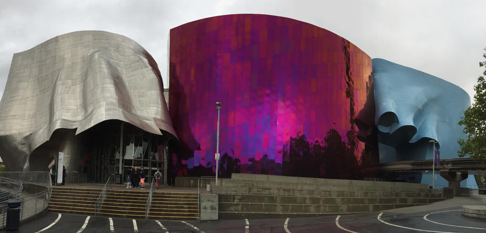 Ce musée a été inauguré en 2004. Selon l'architecte, le choix des teintes de façade a été inspiré par la chanson Purple Haze de Jimi Hendrix natif de Seattle pour le pourpre,