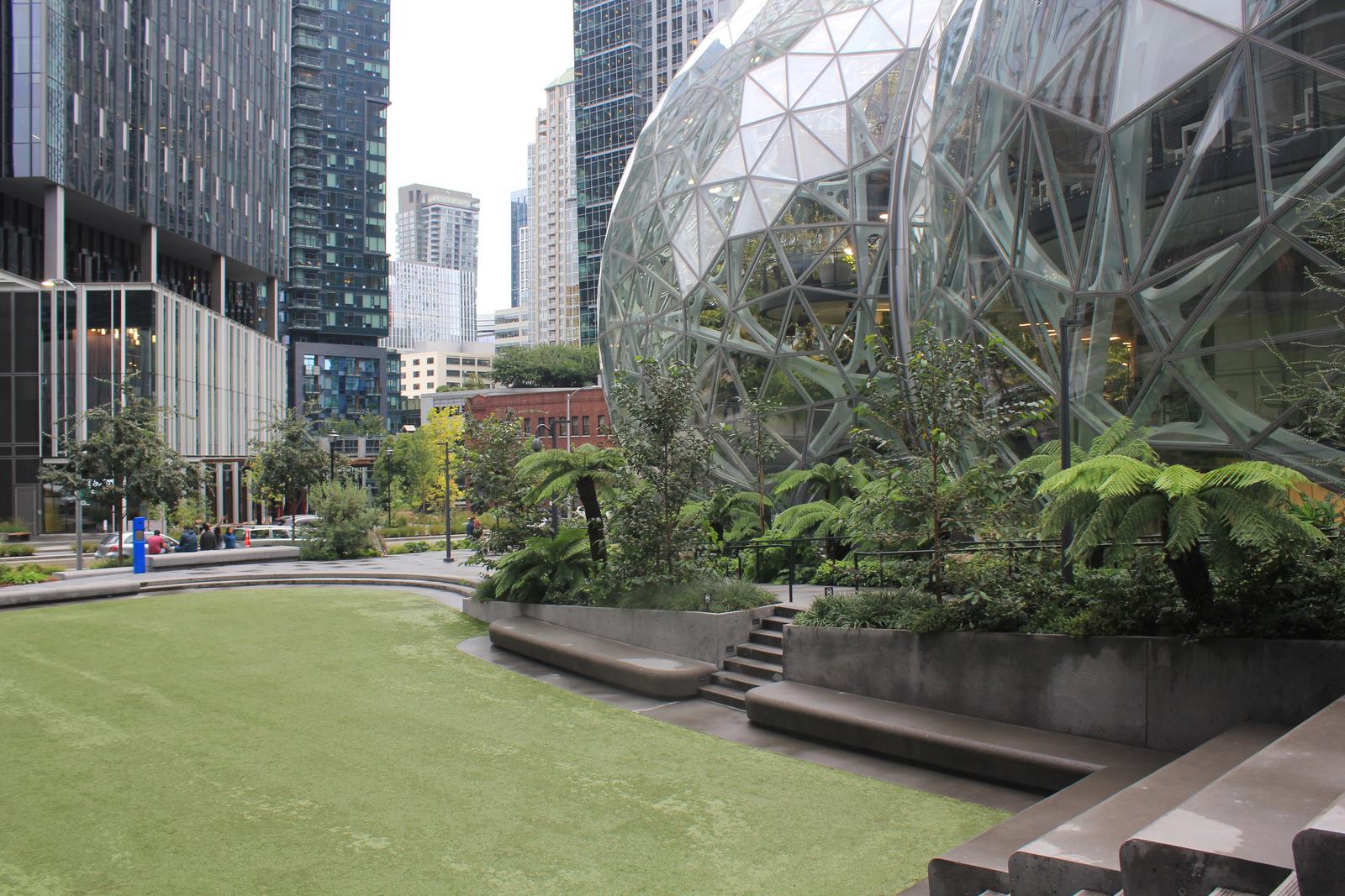 Seattle compte 745 000 habitants. c'est la plus grande ville de l'état de Washington sans en être la capitale. Elle est au coeur d'une aire métropolitaine de 3 427 000 habitants. C'est la ville de naissance de Bill Gates et la ville où a été crée Amazon en 1994 par Jeff Bezos. C'est le premier employeur de la ville et la construction de son siège a profondémment modifié l'architecture de son centre ville. En 2018, trois immenses sphères-verrières ont été ajoutées au pied des tours Amazon, afin de servir de salles de réunion et d'espaces de repos pour les employés. Nous partons à la recherche de celles-ci.