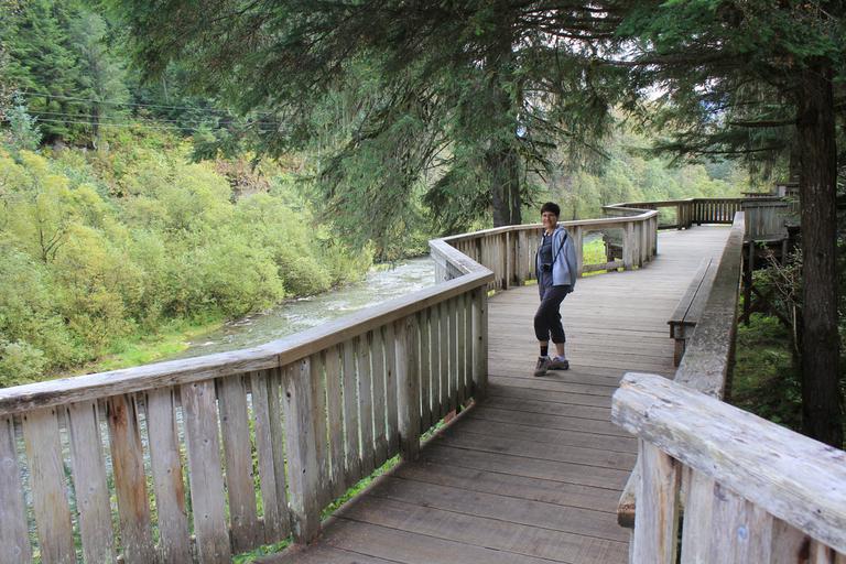 La route est un cul de sac, nous redescendons vers Hyder, le témoin ne s'allume plus. Nous arrivons à la passerelle d'observation, aucun ours n'a pointé son museau depuis notre départ, nous continuons vers Stewart.