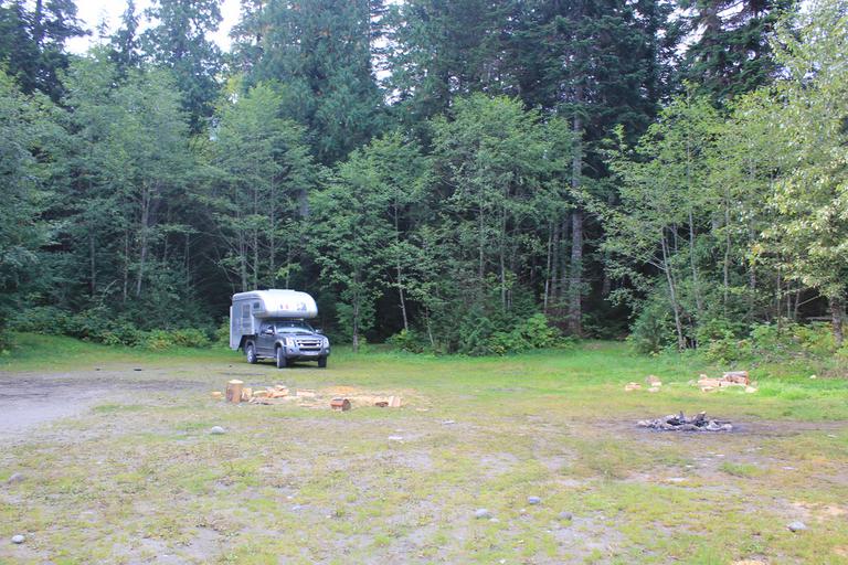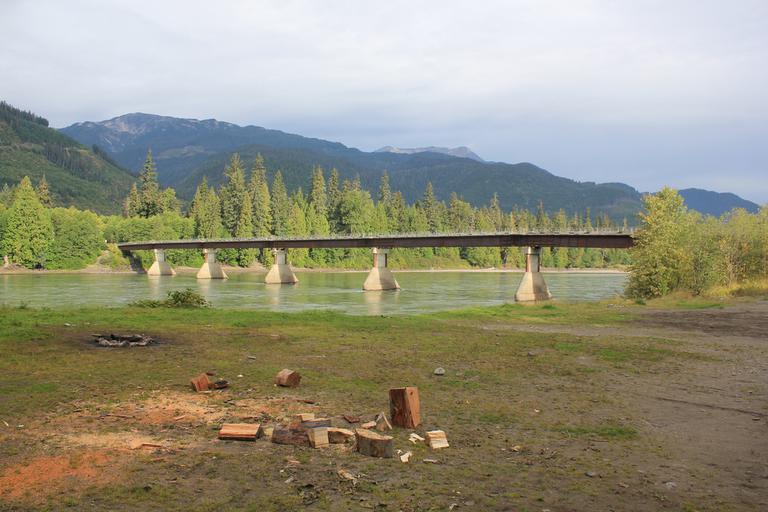 Nous retrouvons la Trans Canada Highway, nous roulons encore une cinquantaine de kilomètres avant de nous arrêter dans une petite clairière au bord de la Skeena River.