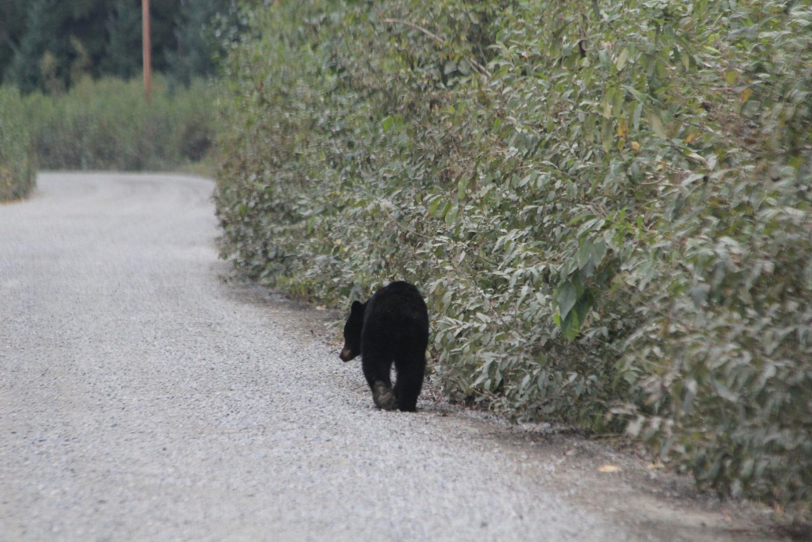 Nous franchissons la frontière et traversons Hyder. Sur les quelques kilométres entre celle-ci et le point d'observation, nous croisons trois ours s'apprétant à traverser la route pour rejoindre la Fish River... Cela s'annonce plutôt bien.