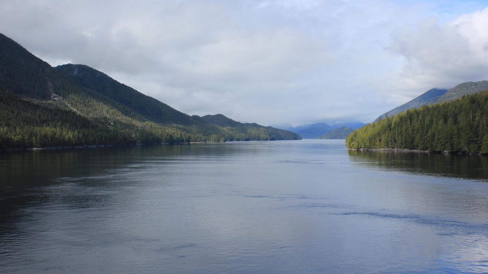La première partie du voyage dans le Grenville Channel est la plus spectaculaire. Dans ce passage long de 70 km, la largeur n'est que de 400 m alors que les fonds atteignent 500 m.