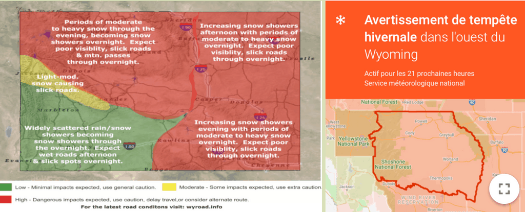 Nous avons retrouvé du réseau, Isa regarde les prévisions météo et s'aperçoit qu'une alerte tempête hivernale a été émise pour l'ouest du Wyoming. Il va neiger cette nuit et la température sera de -13°C demain matin, et restera fortement négative durant les jours suivants...