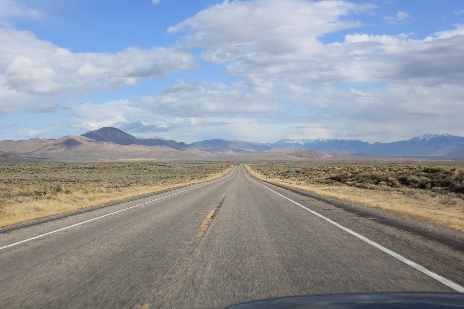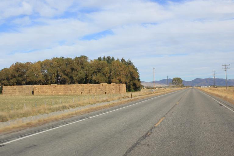 Il nous reste un peu plus de 300km à parcourir pour rejoindre Yellowstone. Nous passons Arco et prenons la route 33 en direction de Rexburg. Les zones semi-désertqiues alternent avec des zones cultivées, une seule constante, les lignes droites interminables...