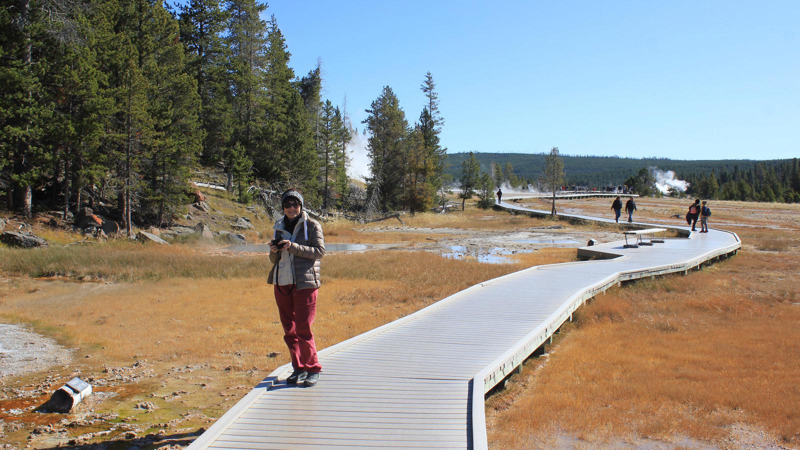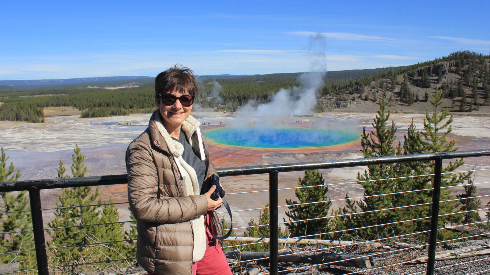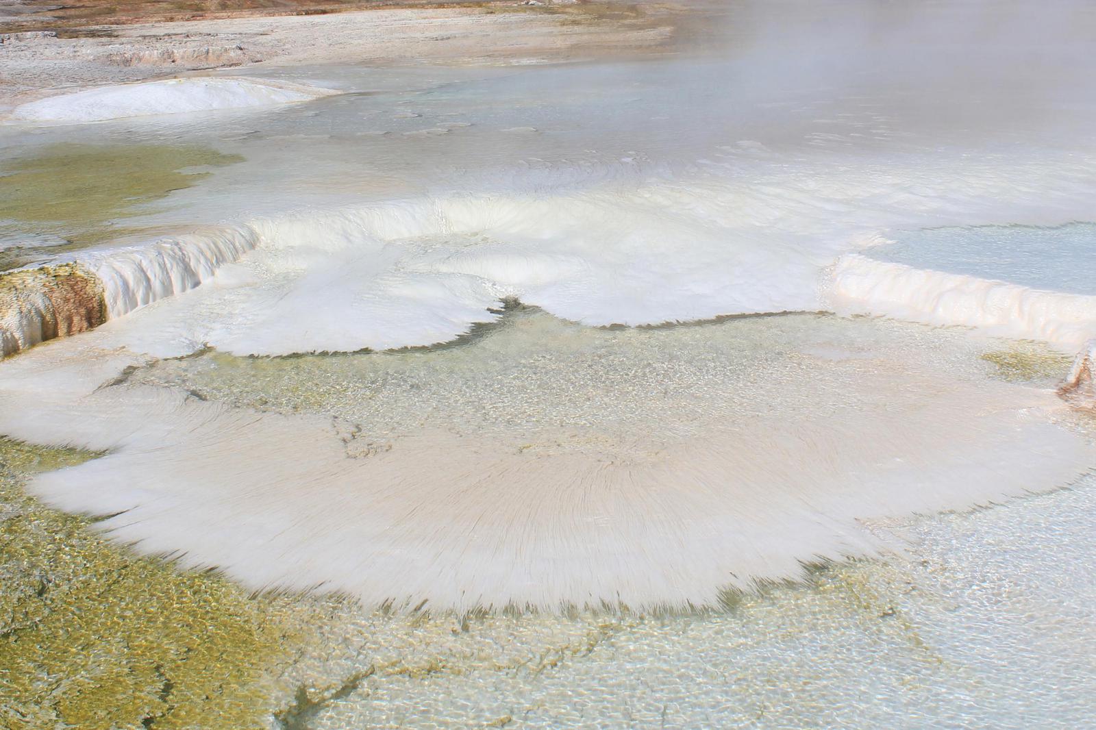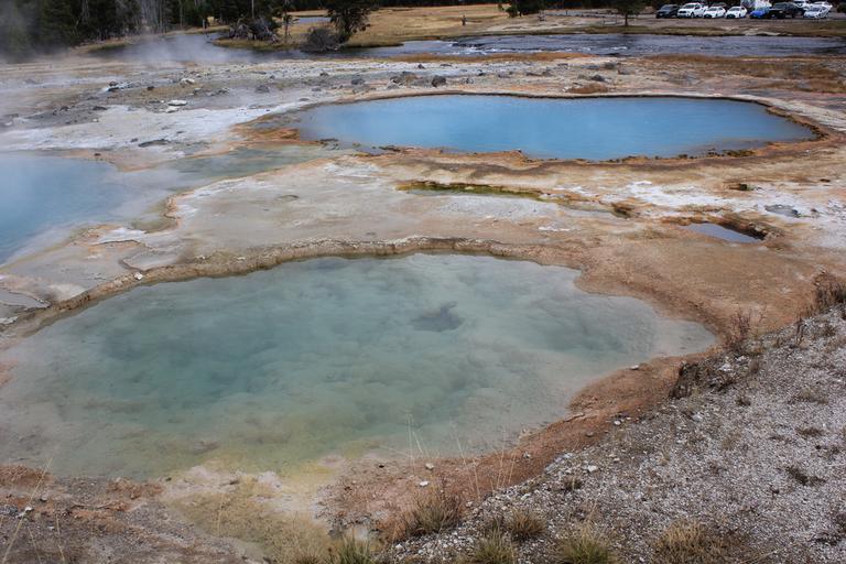 Nous faisons une halte pour voir une source chaude, Ojo Caliente, puis continuons jusqu'à Lower Geyser Basin. Les cheminements en bois nous permettent d'approcher au plus près des sites, aucun ne se ressemble, c'est extraordinaire.