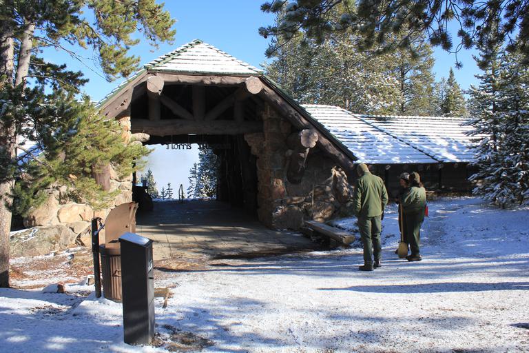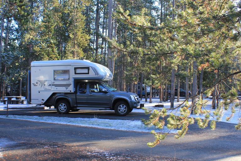 je me demande si nous allons pouvoir entrer dans le parc, mais nous sommes très vite rassurés en voyant la file des visiteurs, il y a du monde ce matin et les voitures passent. Vient notre tour, le ranger nous prévient que certaines routes sont fermées, mais elles devraient ouvrir dans la journée. Nous sommes à l'entrée ouest, nous roulons 23km et arrivons à Madisson. Nous nous rendons immédiatement au camping, un des quatre campings encore ouverts à cette saison, et réservons notre nuit.