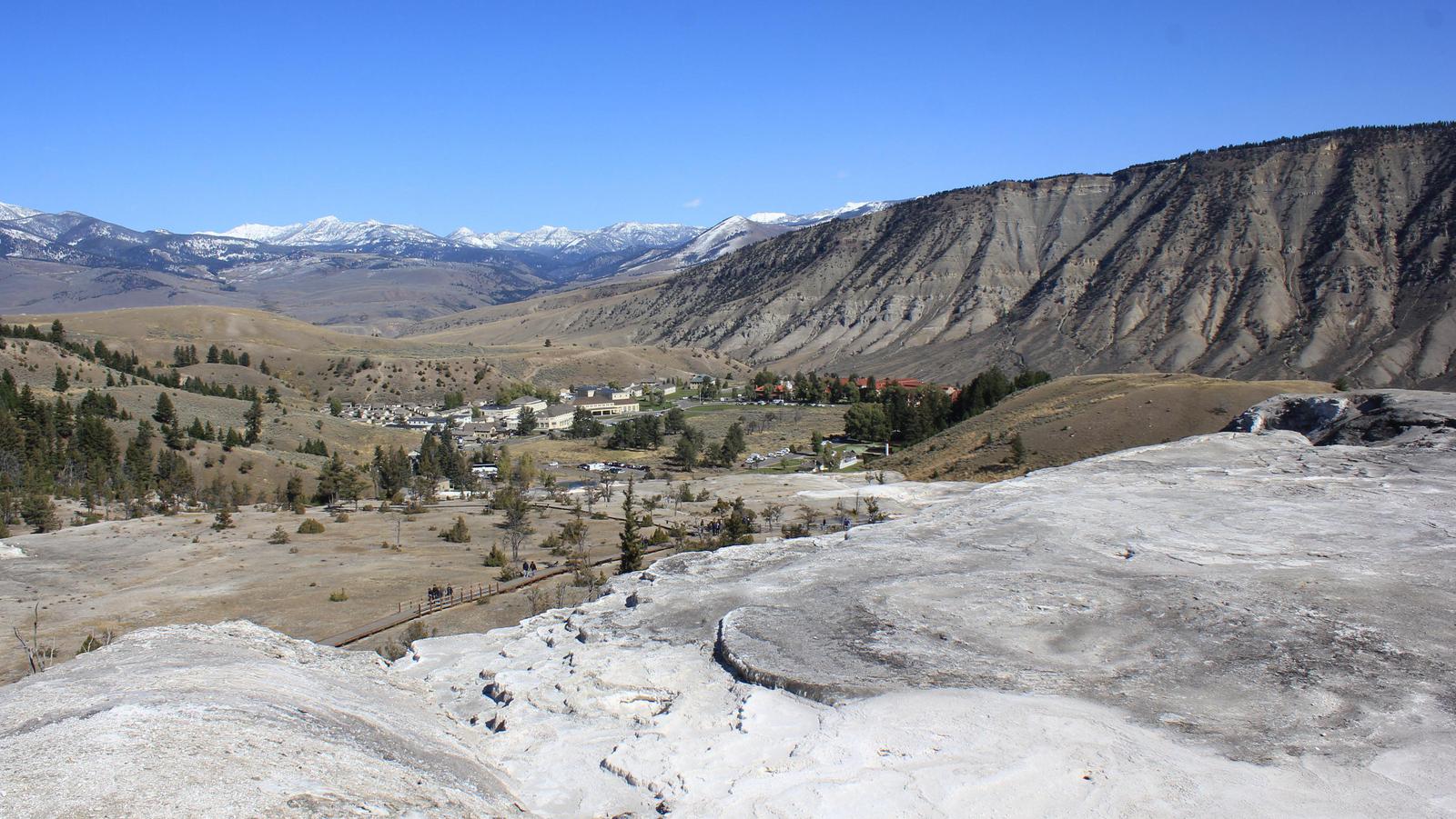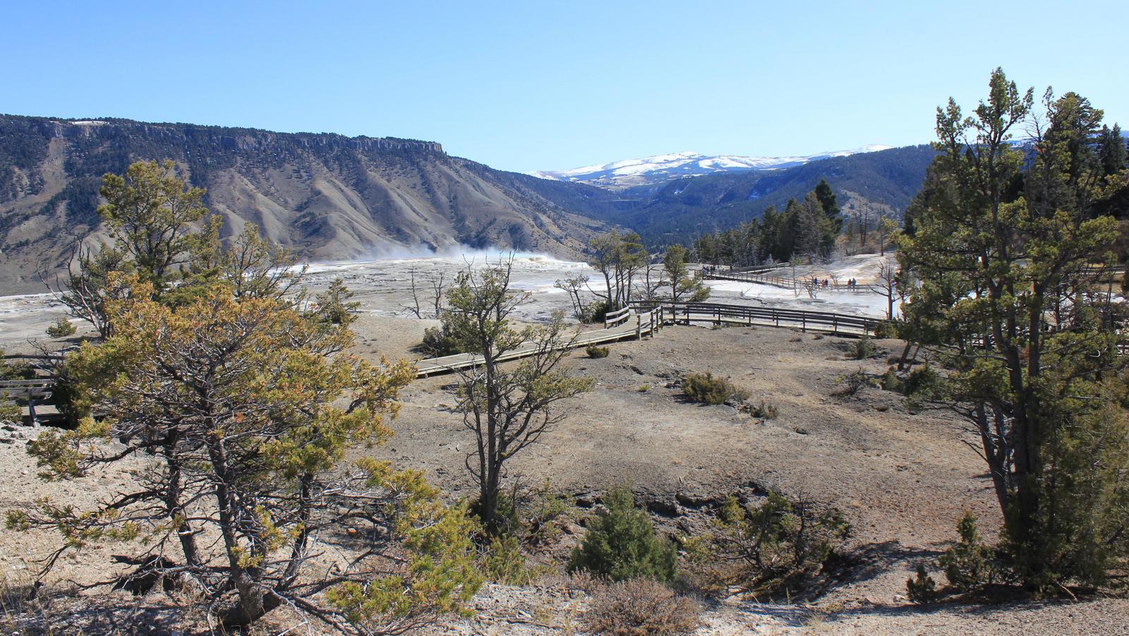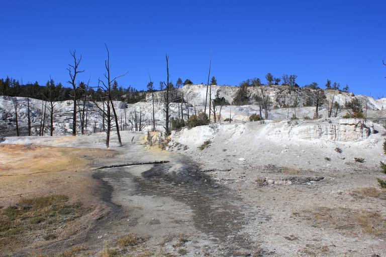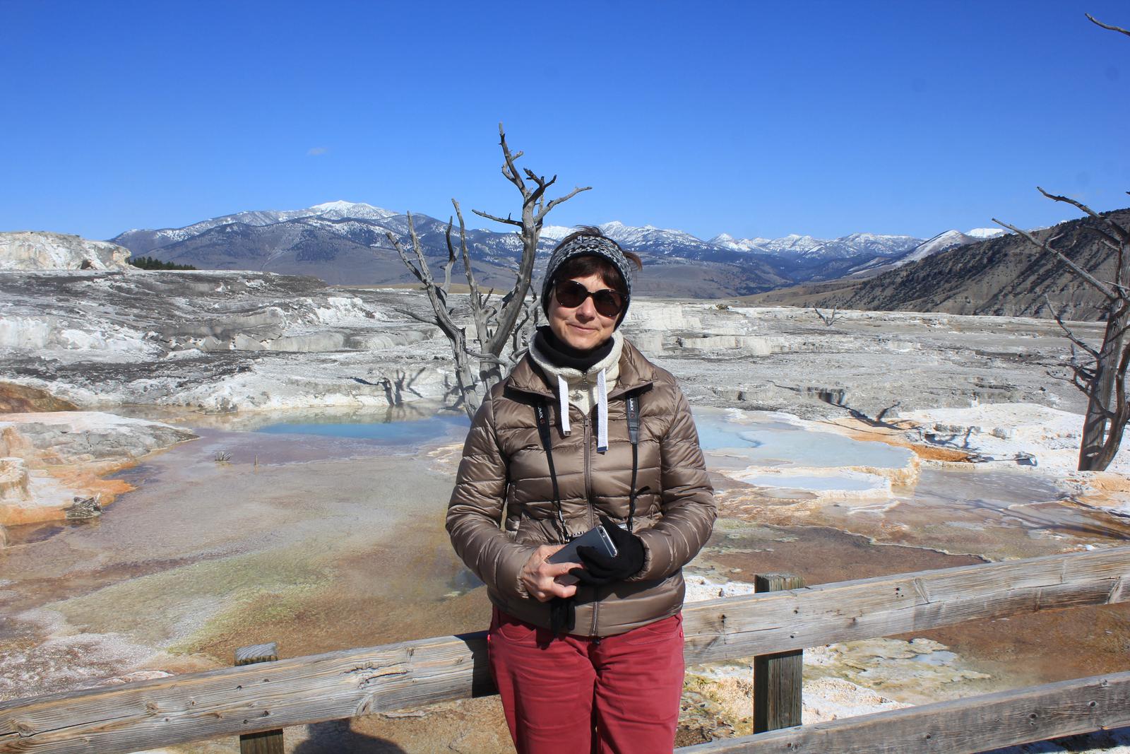 Nous continuons notre route, traversons de grandes prairies et arrivons à Mammoth Hot Springs Area.