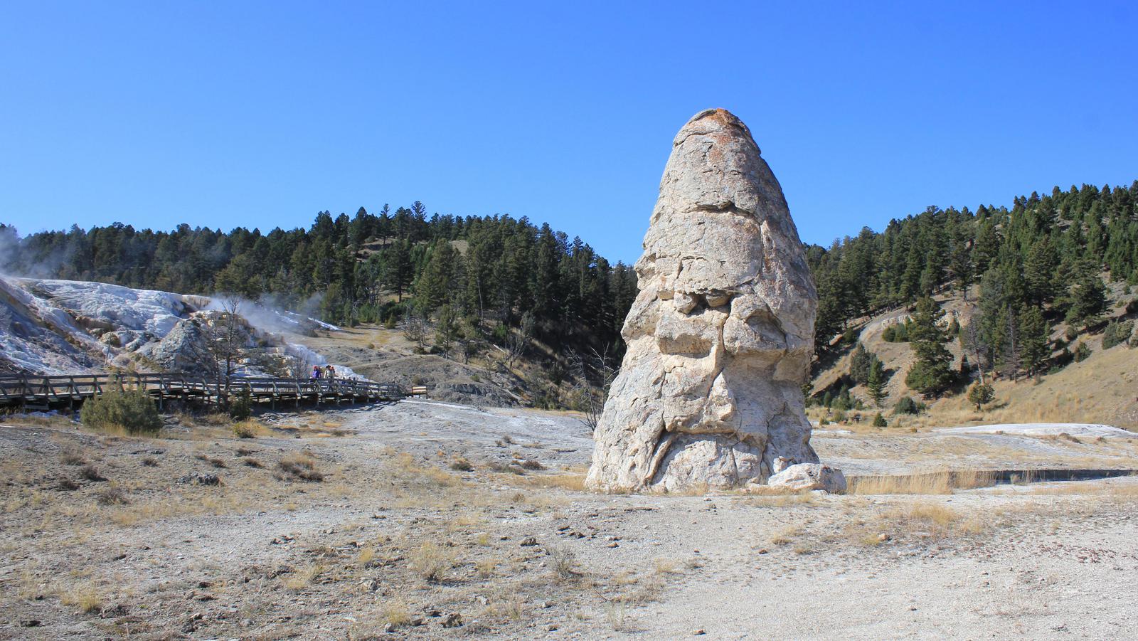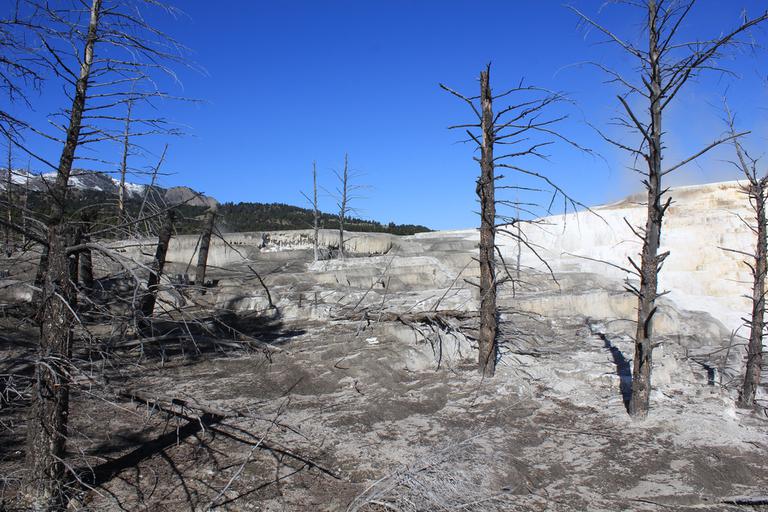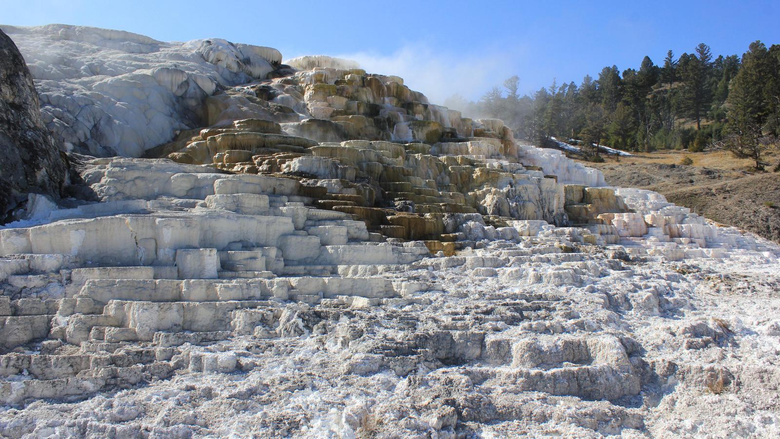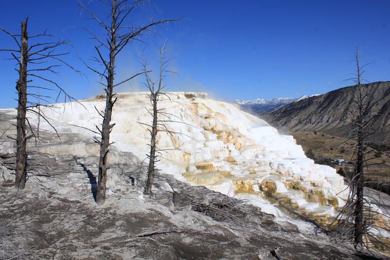 Nous continuons notre route, traversons de grandes prairies et arrivons à Mammoth Hot Springs Area.