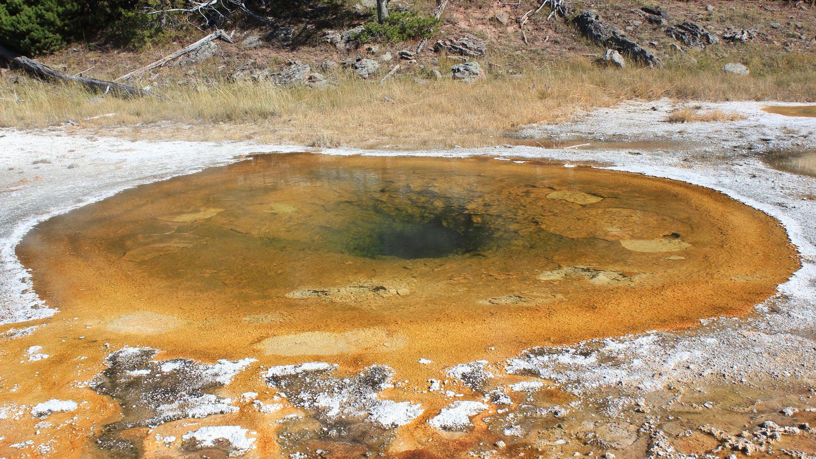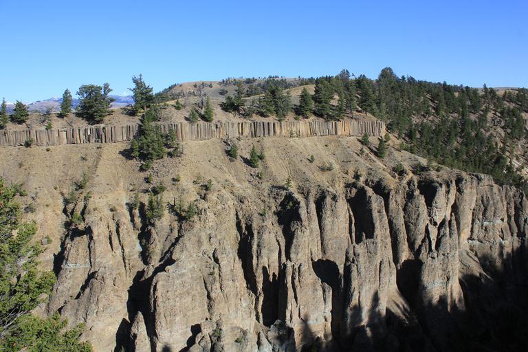 Nous nous arrêtons au parking suivant, au départ de la randonnée pour Fairy Falls. Rien n'est indiqué, mais en regardant le Grand Prismatic, Isa a aperçu des toursites sur la colline juste derrière...