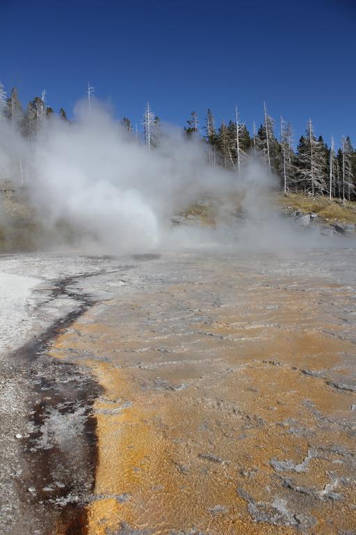 C'est dans ce dernier secteur de Back Basin que se trouve le Steamboat Geyser, le plus haut geyser du monde avec un jet à plus de 90m. Aucune activité ce matin et il est totalement imprévisible... C'est devant ce monstre que nous faisons connaissance avec Solène et Brett, un couple franco-australien parti d'Australie en tour du monde et arrivant d'Amérique du Sud.