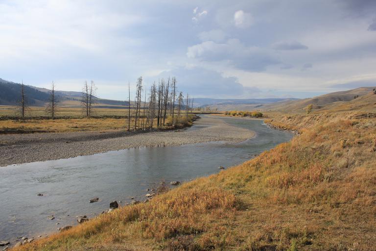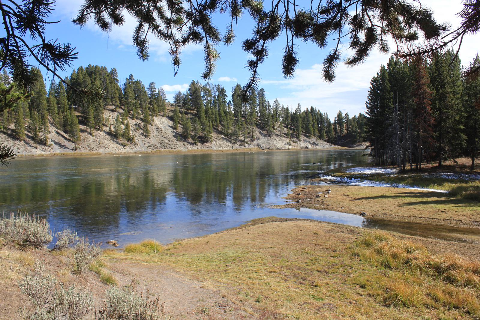 Nous poursuivons notre route et longeons maintenant les méandres de la paisible rivière Yellowstone.