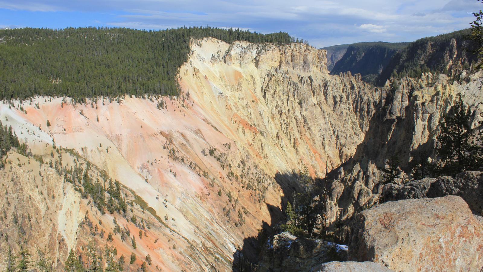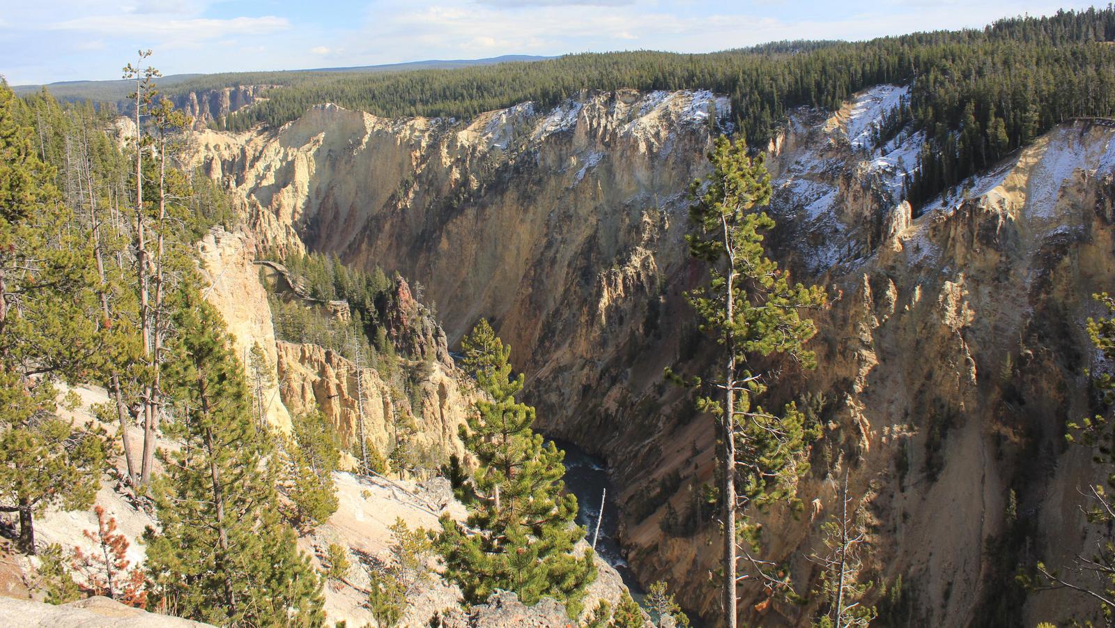 Nous arrivons aux points de vue sur Lower et Upper Falls. La Yellowstone si calme fait une chute de 100m et entre dans un vertigineux canyon. Nous déjeunons sur le parking du point de vue, puis rejoignons Inspiration Point, un autre extraodinaire point de vue, tout au bout de la North Rim Road.
