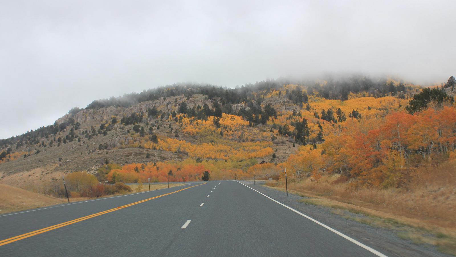 La route s'éloigne de la rivière, nous retrouvons la boucle nord que nous avons déjà empruntée. Nous franchissons le Dunraven Pass, il est 17h00, à 2 700m il fait encore 19°C. Difficile d'imaginer que la neige va faire son arrivée cette nuit.