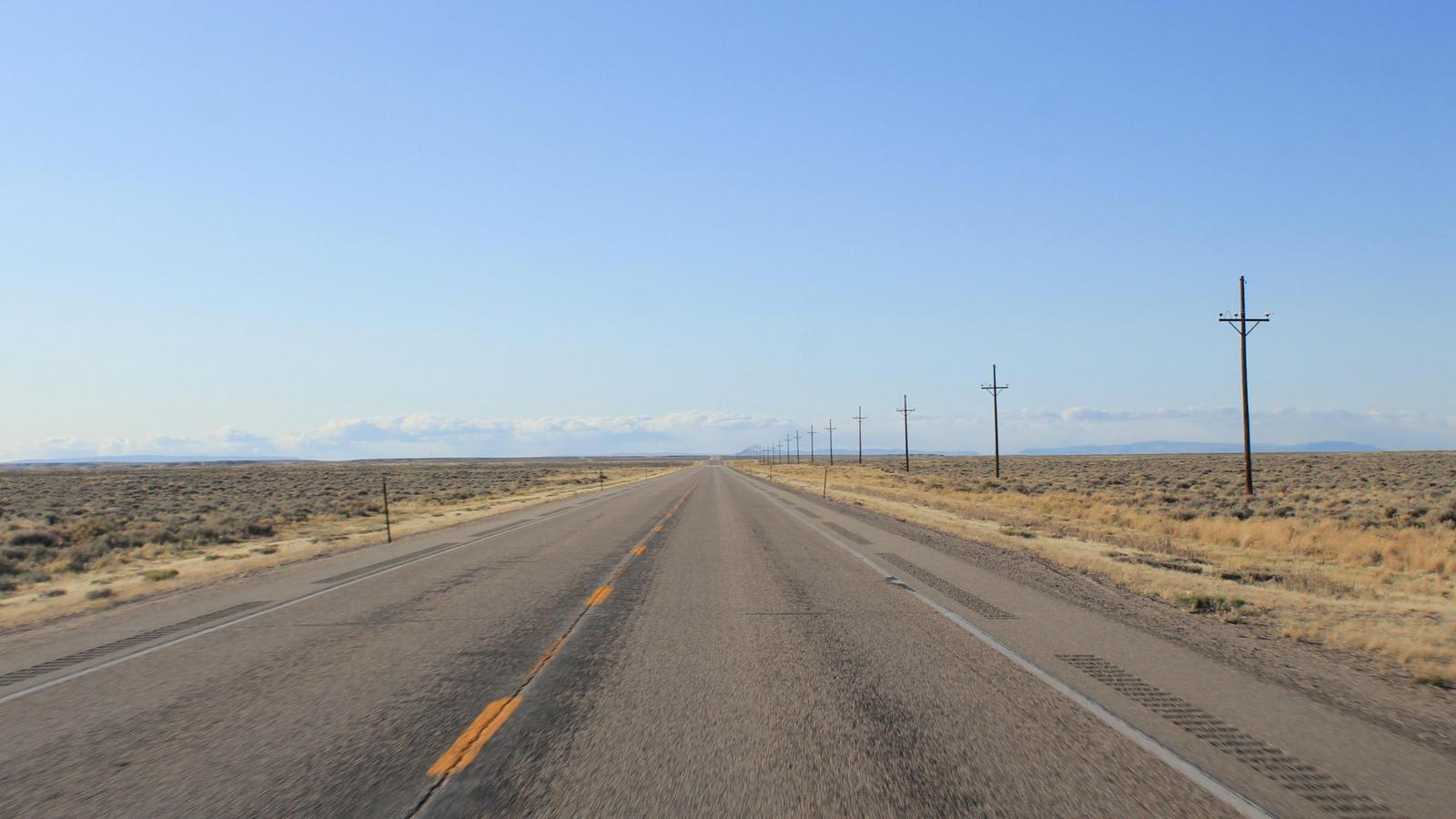 Nous nous arrêtons pour déjeuner sous le soleil à Farson. Le ciel est carrément tout bleu lorsque nous arrivons sur l'autoroute 80.