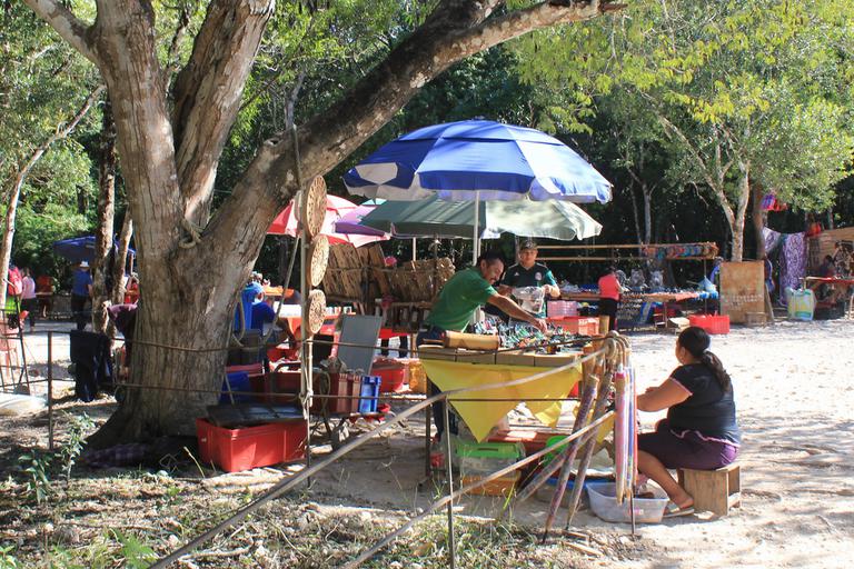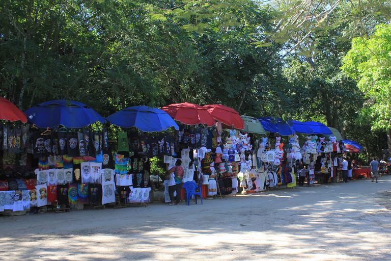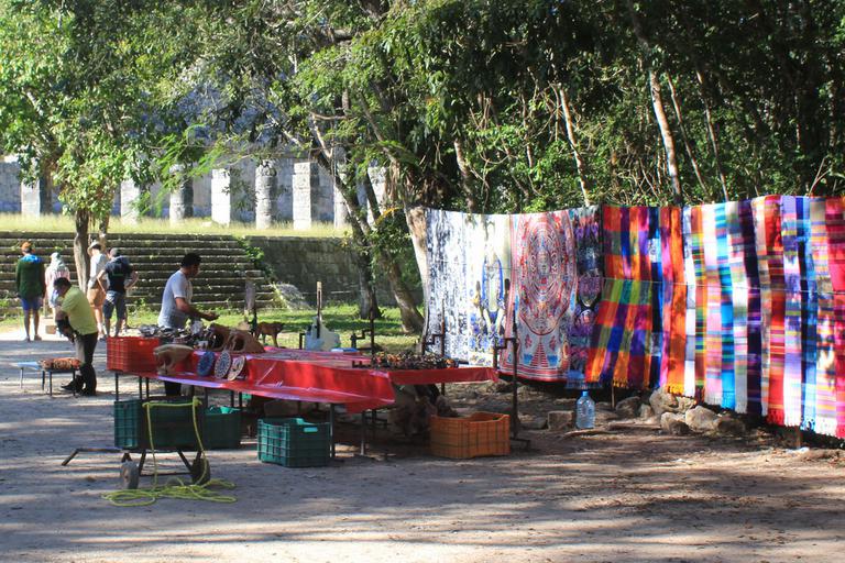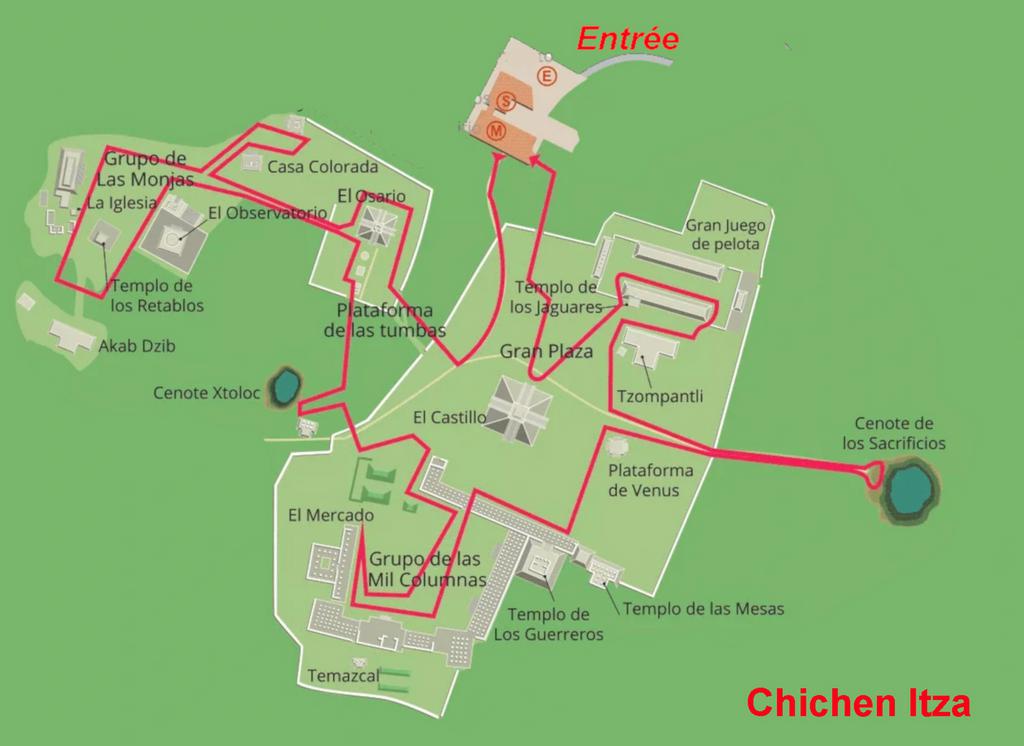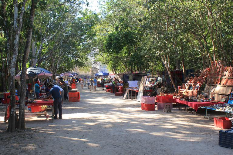 Contrairement à Uxmal, le site de Chichen Itza avait de l'eau grâce à la présence de deux puits naturels, les cénotes Xtoloc et celui des Sacrifices. Nous jetons un oeil au premier, celui-ci est asséché. Pour accéder au second, il faut suivre une allée bordée d'étalages de souvenirs et se frayer un passage entre les groupes de touristes... J'y renonce.