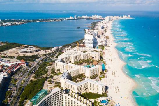 Cancun est divisé en deux parties bien distinctes, une zone hotelière construite sur un cordon littoral entre la mer des Caraïbes et une lagune, et une zone urbaine où vivent tous les employés indispensables au fonctionnement de cette industrie.