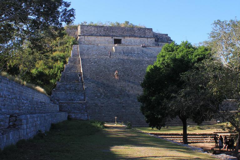 L'entrée est gratuite, un large escalier permet d'atteindre l'immense plateforme sur laquelle est construite la pyramide. Les premières marches sont restaurées mais au-delà du deuxième niveau, la montée devient beaucoup plus sportive.