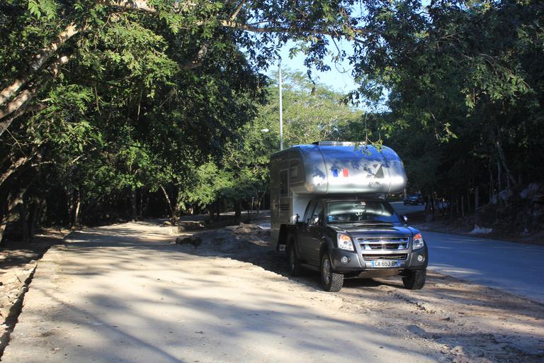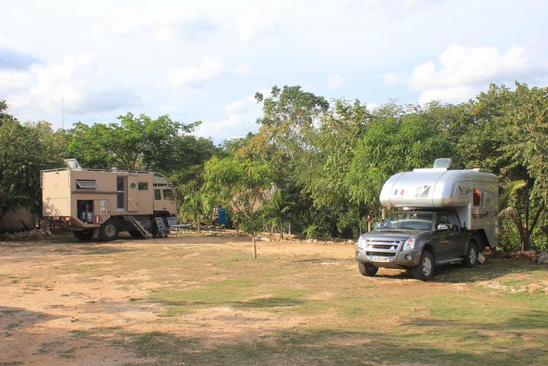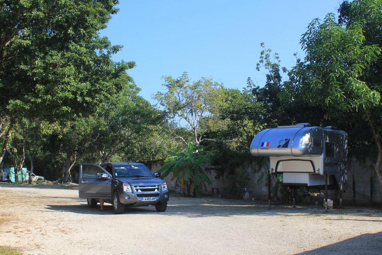 Ce camping est tenu par Paul et Christy. Il est canadien et ne parle qu'anglais, elle est mexicaine. Paul nous fait faire le tour du propriétaire, le camping est très bien et nous serons seuls. Laisser notre véhicule un mois ne nous coûtera que 1700 pesos, soit 85€, en revanche le tarif de la nuit est élevé, 540 pesos par jour, 27€, mais nous avons tous les services et une piscine. Nous choisissons cette option qui semble être l'endroit idéal pour préparer notre voyage retour.