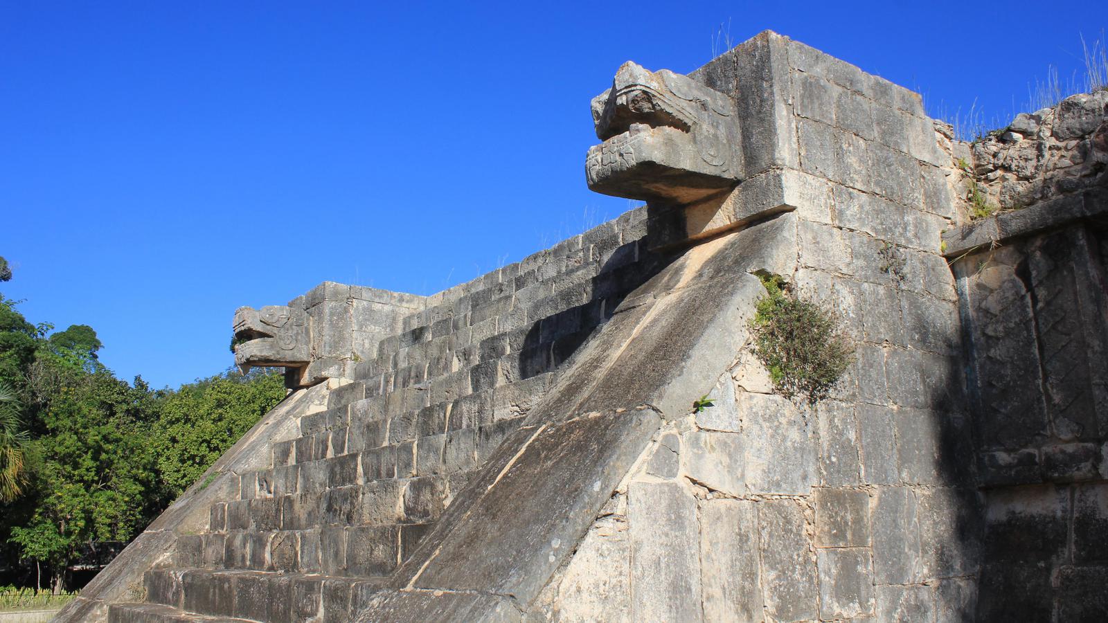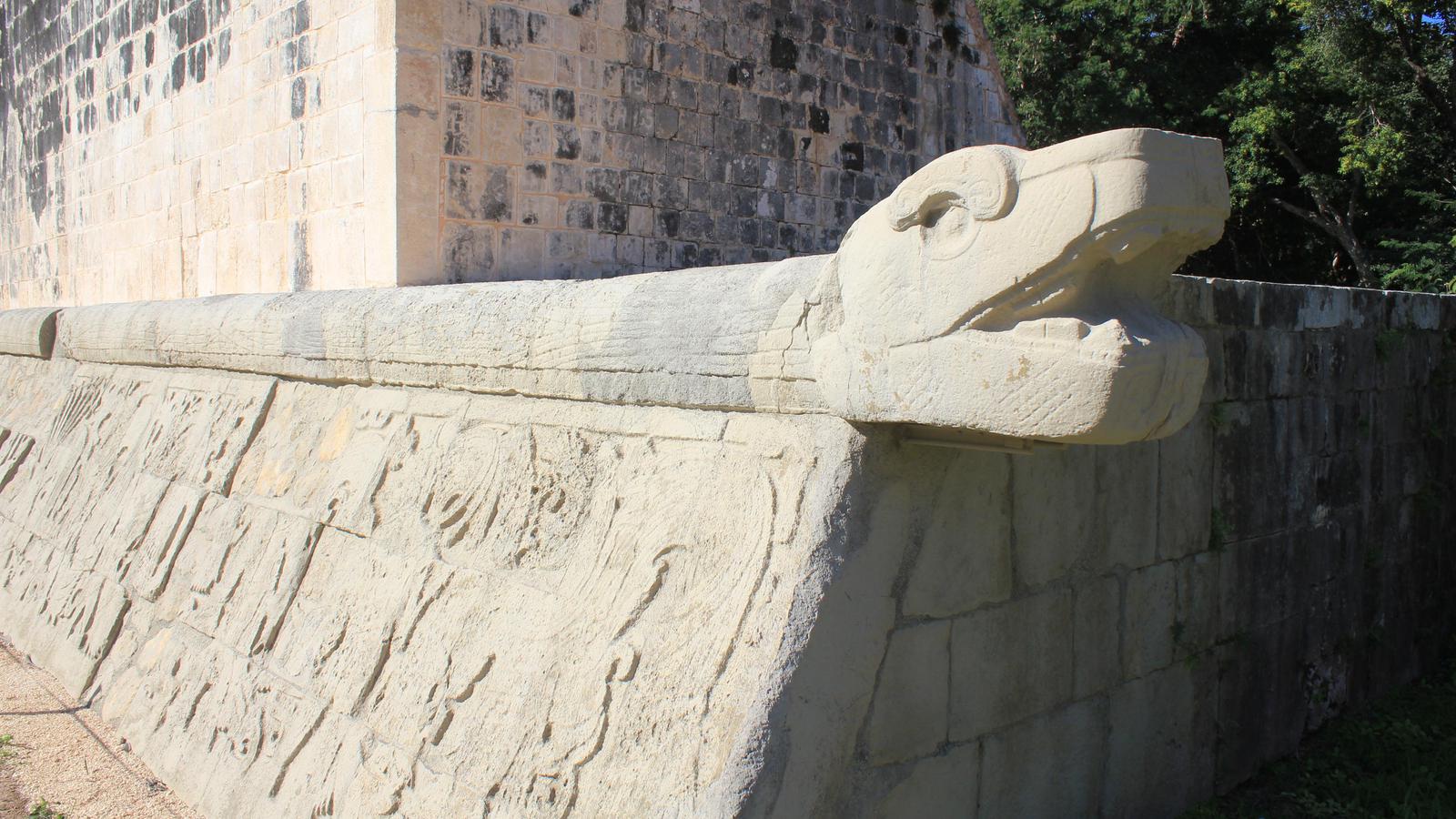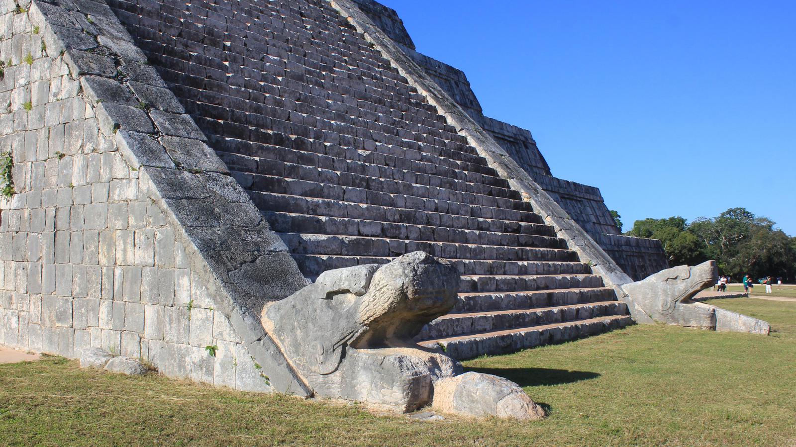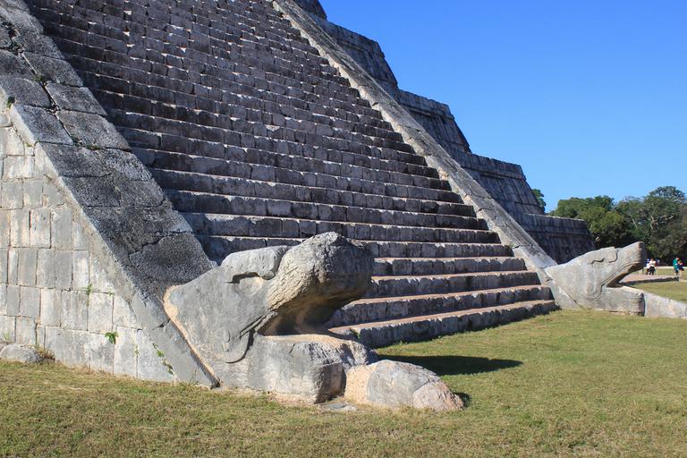 Aux équinoxes, les arêtes arondies de la pyramide dessine une ombre ondulée sur le mur de l'escalier. Cette ombre, prolongée par les deux têtes de pierre au niveau du sol, donne l'illusion de l'apparition d'un serpent, qui n'est autre que le dieu Kukalkan, le "serpent à plume".