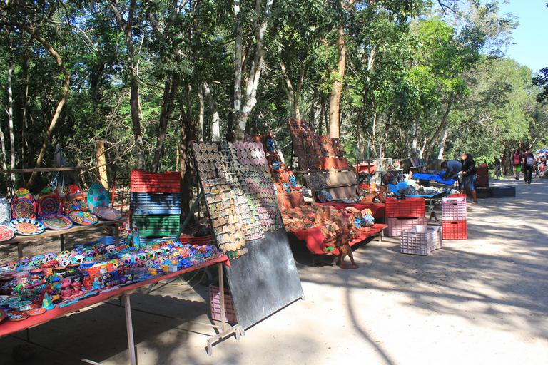 Le parking du site est payant, 80 pesos la journée, 4€ et l'entrée coûte 338 pesos, 16,70€ par personne. Ce prix élevé fait suite à la décision du gouvernement du Yucatan d'augmenter les prix de 110% à compter du 1er janvier 2019. Nous souhaitions visiter Choco-Story, un éco-musée sur la fabrication du chocolat en face du site, compte-tenu de ces tarifs nous en ferons l'impasse. Nous aurons certainement l'occasion d'en visiter ailleurs... Les caisses n'acceptent pas les cartes bancaires, nous devons retirer des pesos au distributeur. Juste un euro de frais, mais le taux de change est très défavorable pour nous...
